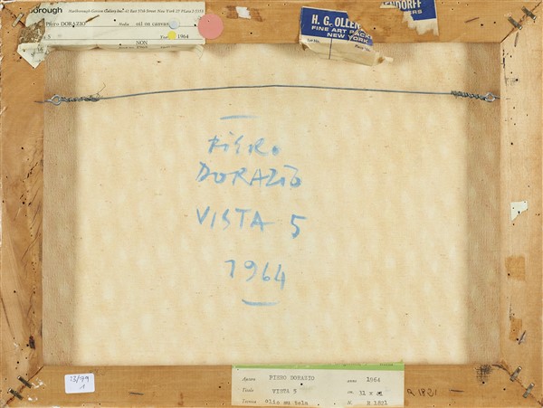 PIERO DORAZIO "Vista 5" 1964 olio su tela cm 30,8x41 Firmato, titolato e datato
