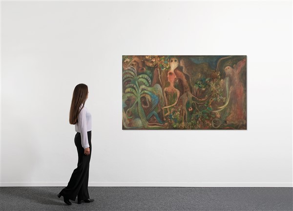 Manuel Mendive "Composition aux personnages" 1989 olio su tela cm 151,5x250,5 Fi