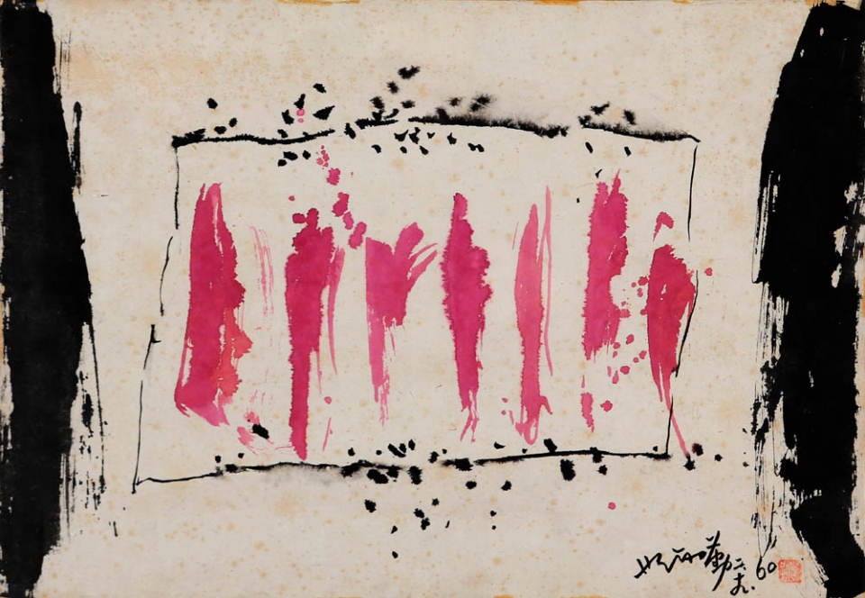 HSIAO CHIN 1935 " Disegno - JJ ", 1960 Tecnica mista su carta telata, cm. 40 x 57,5 Firmato e datato in basso a destra Prov. Collezione Privata