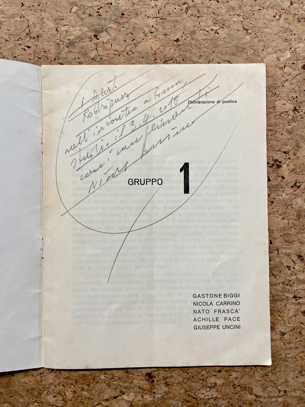 Piccolo volume di dichiarazione di poetica del Gruppo 1, edito in occasione della prima esposizione tenutasi presso Galleria LA MEDUSA, Roma, 1963