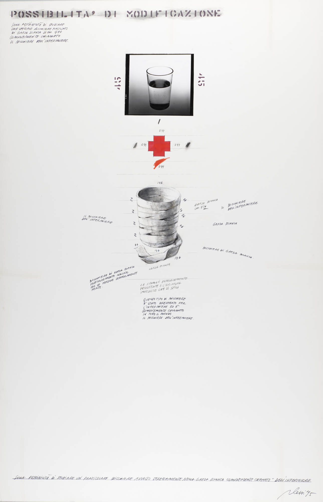 FABRIZIO PLESSI Sulla possibilità di studiare un particolare bicchiere avvolto strettamente nella garza bianca comunemente chiamato "dell'infermiere", 1975