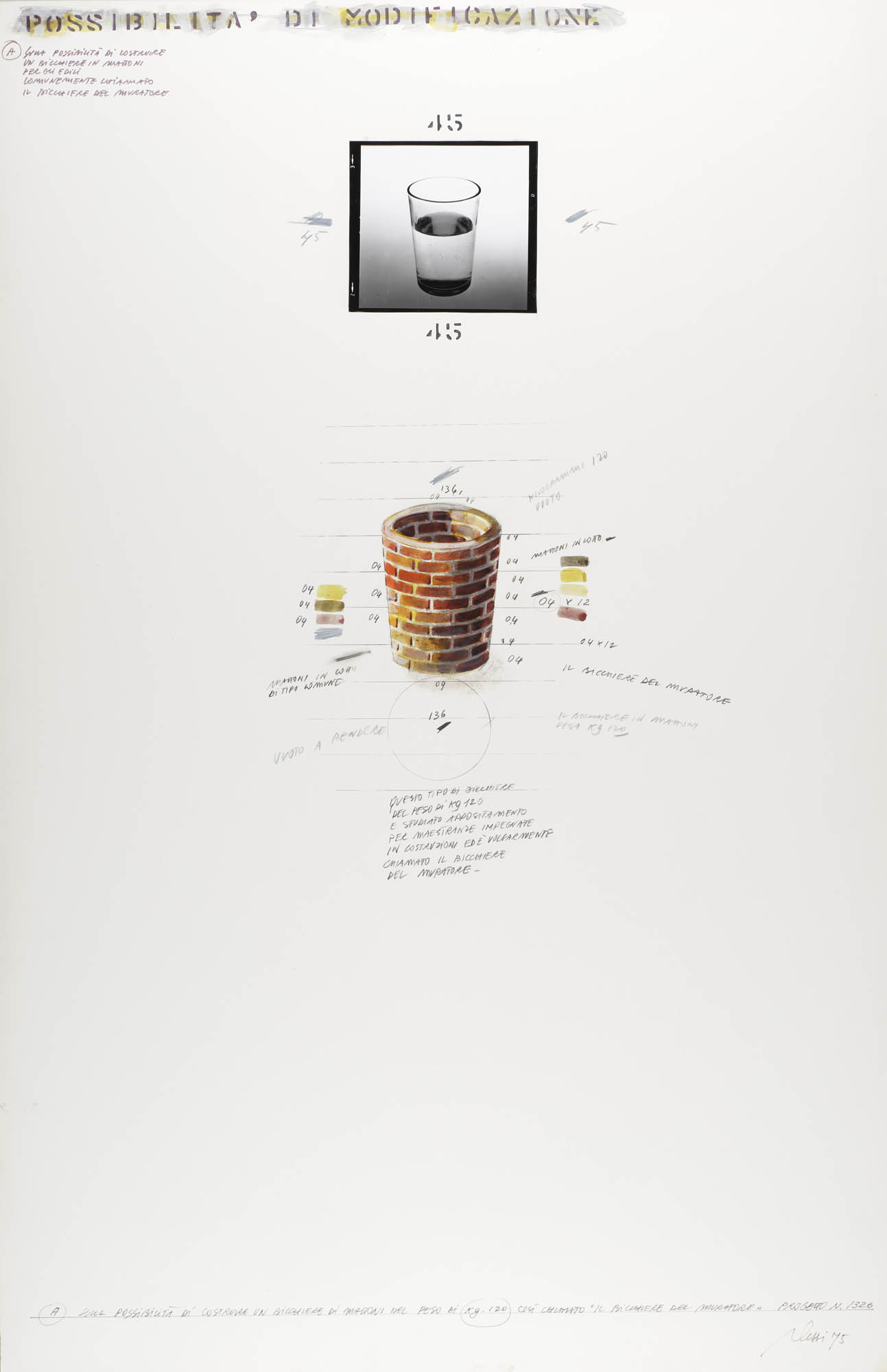 FABRIZIO PLESSI Sulla possibilità di costruire un bicchiere di mattoni del peso di kg. 120 così chiamato "il bicchiere del muratore". Progetto n. 1326, 1975