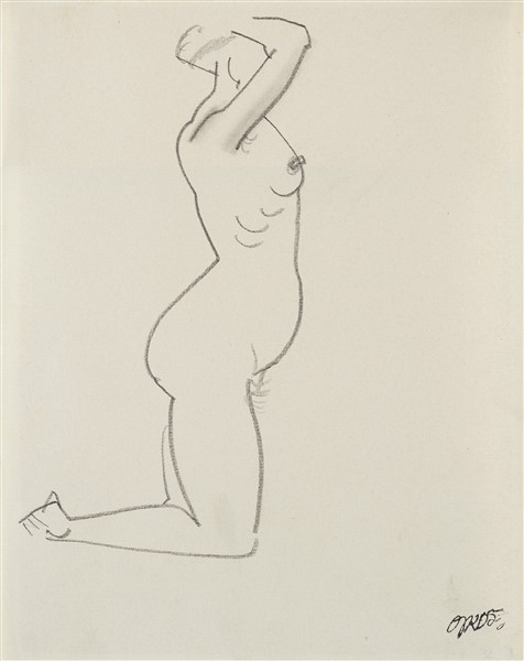 GEORGE GROSZ "Nudo in ginocchio" 1915 carboncino su carta cm 28,5x22,5 Firmato i