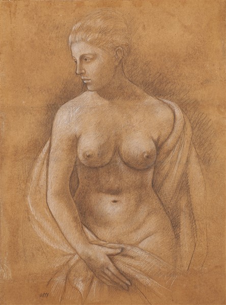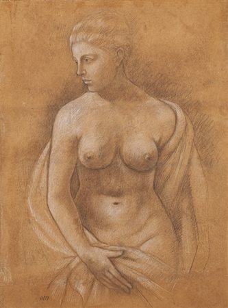 Ubaldo Oppi "Nudo con scialle" tecnica mista su carta cm 65,5x48,5 Firmato in b