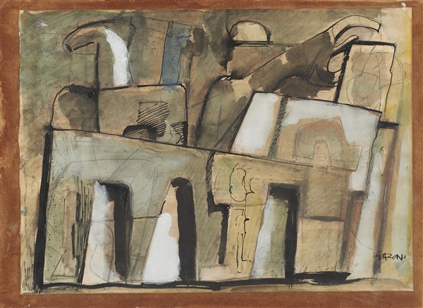 Mario Sironi "Composizione" 1945 circa tempera, tempera diluita, matita e china