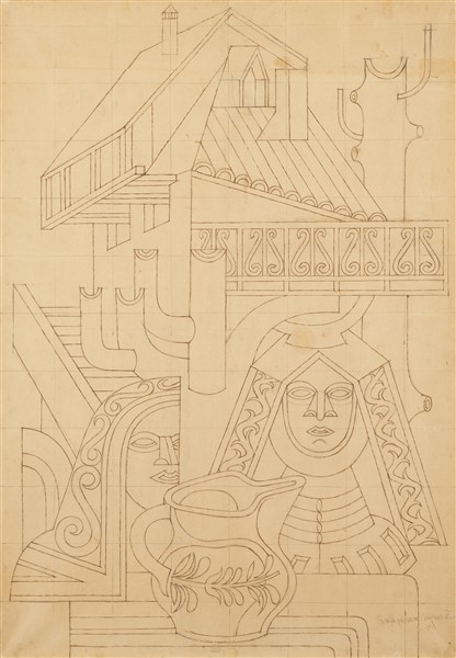 Fortunato Depero "Caraffa paesana" 1947 matita e china su carta intelata cm 100x