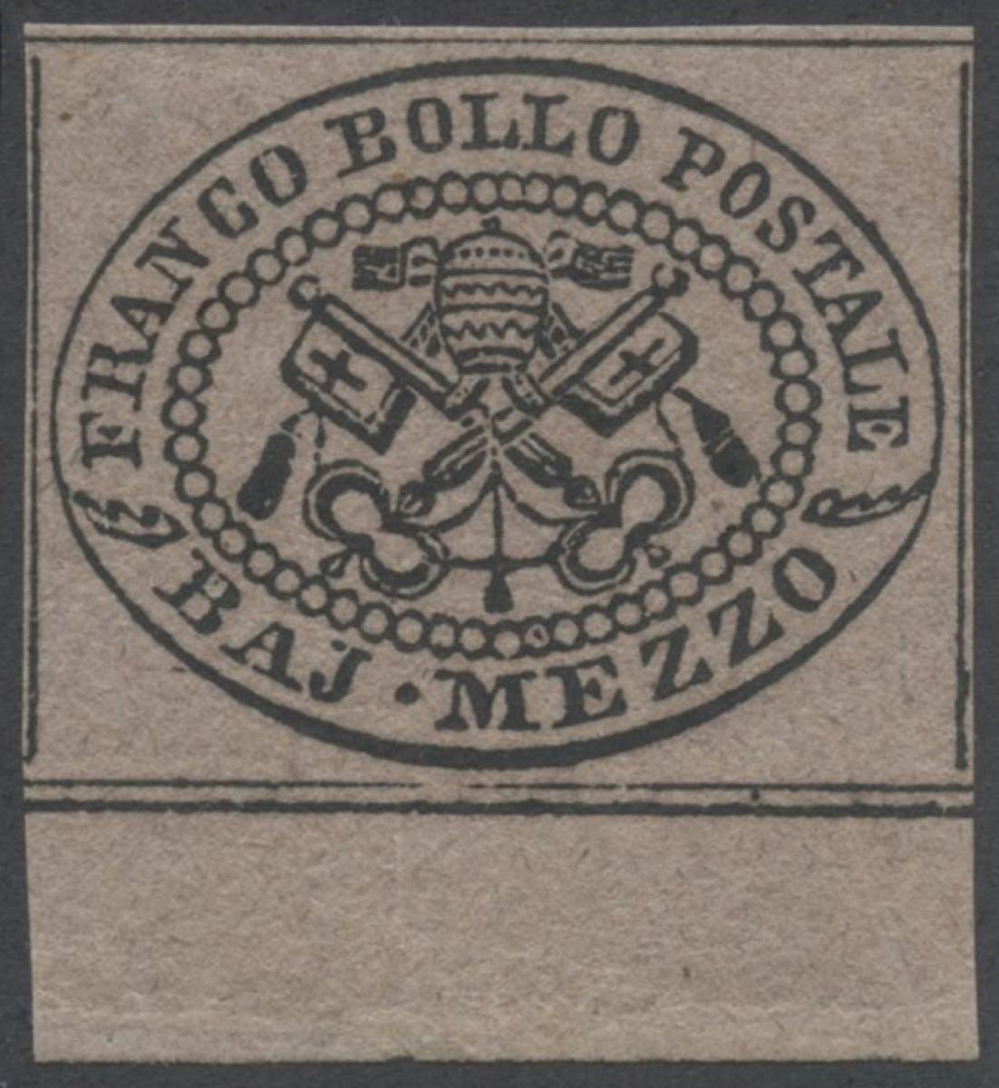 1852, 1/2 b. Violetto grigiastro N.1A con bordo di foglio in basso, nuovo MH....