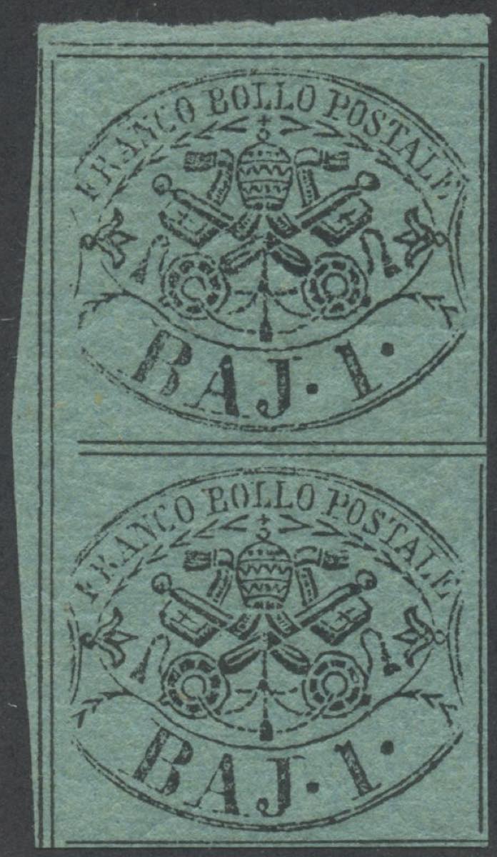 Lot 80 | 1864, 1Baj Verde Scuro N.2B in coppia verticale, nuovi con gomma MLH. Traccia...