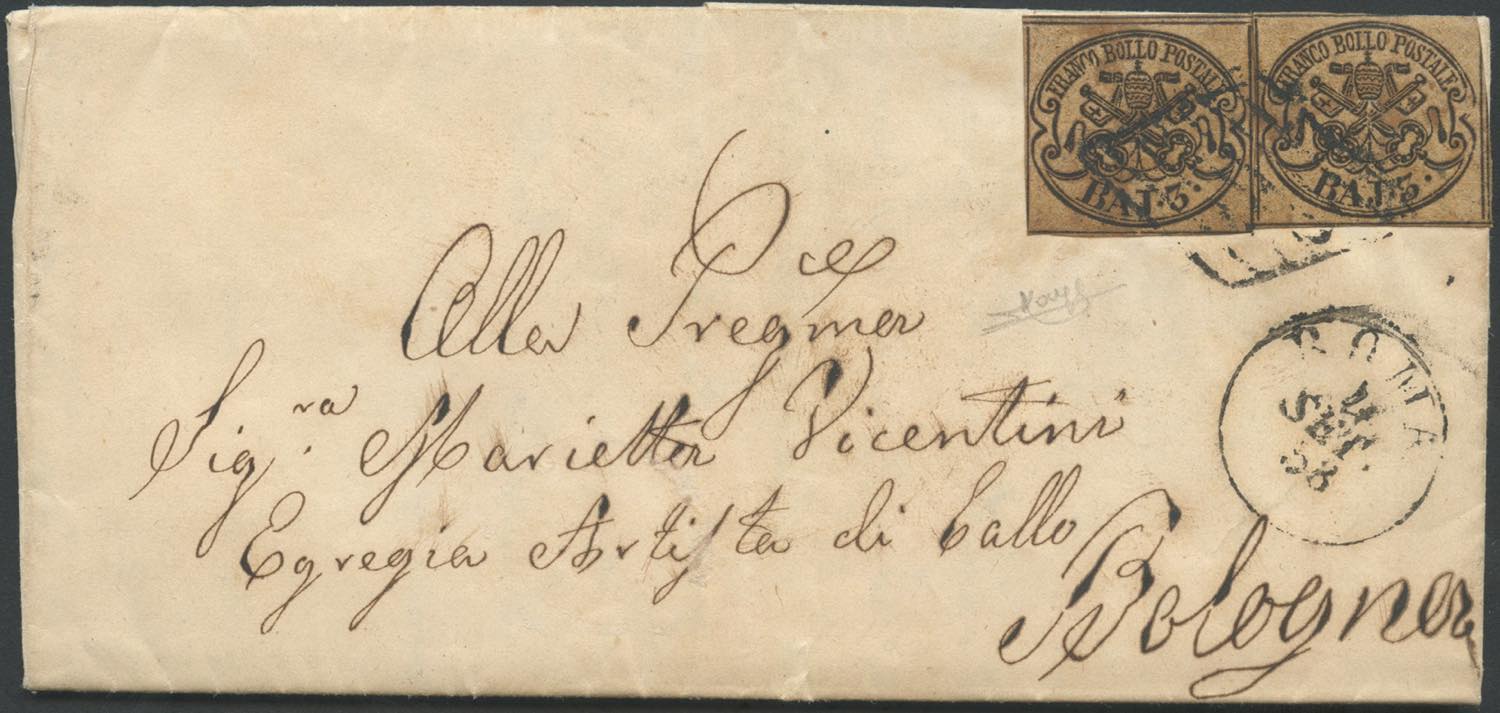 04.09.1858, Lettera da Roma per Bologna affrancata per 6Baj. tramite due...