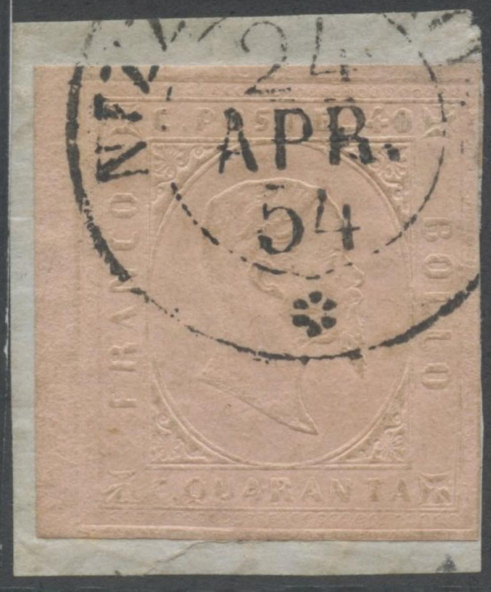 1853, 40c. Rosa N.6 usato a Nizza Marittima il 24 apr. 1854 e conservato su...
