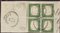 1863, 5c. N.13D Verde Scuro in quartina usata su grande frammento. (A) (E....