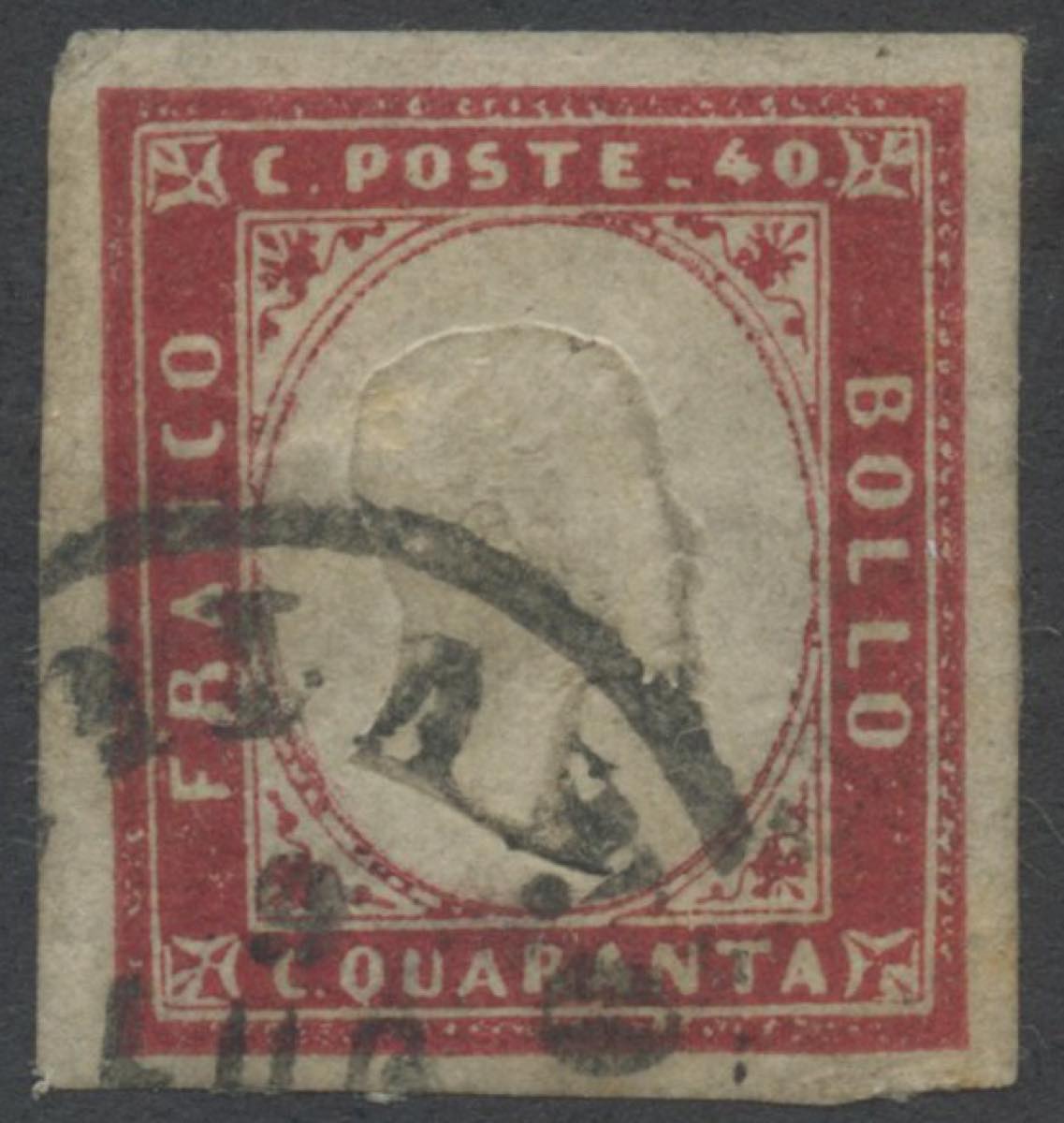 1860, 40c. 16Ca (Carminio Cupo), usato. (A+) (Oliva)