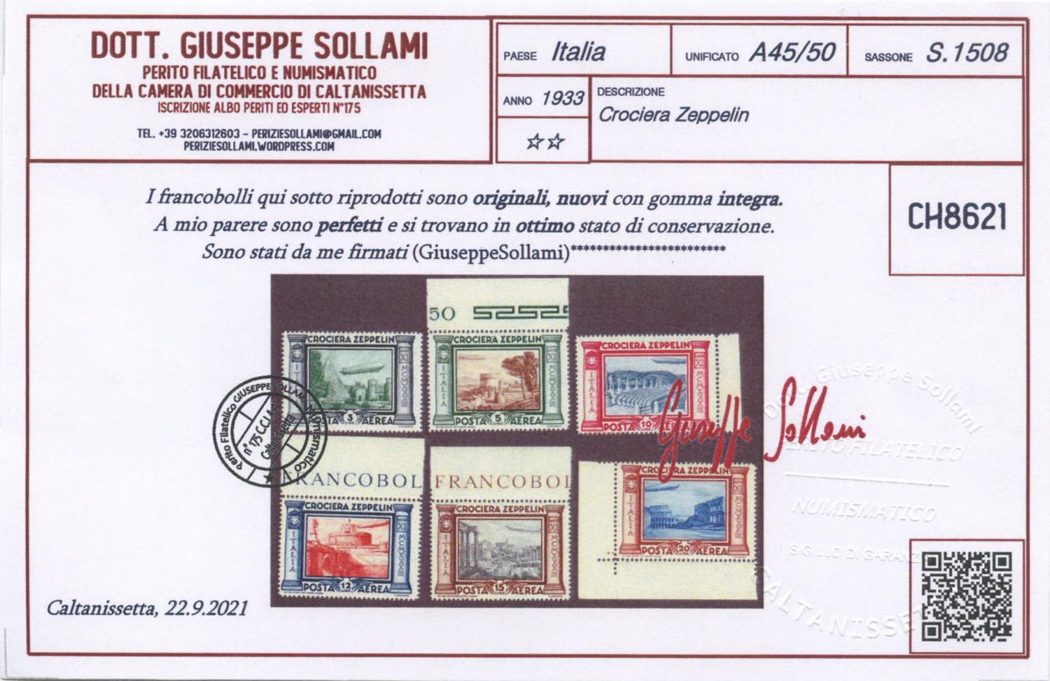 Lot 170 | 1933, Serie Zeppelin N.45/50 nuova gomma integra MNH. Cert Sollami.