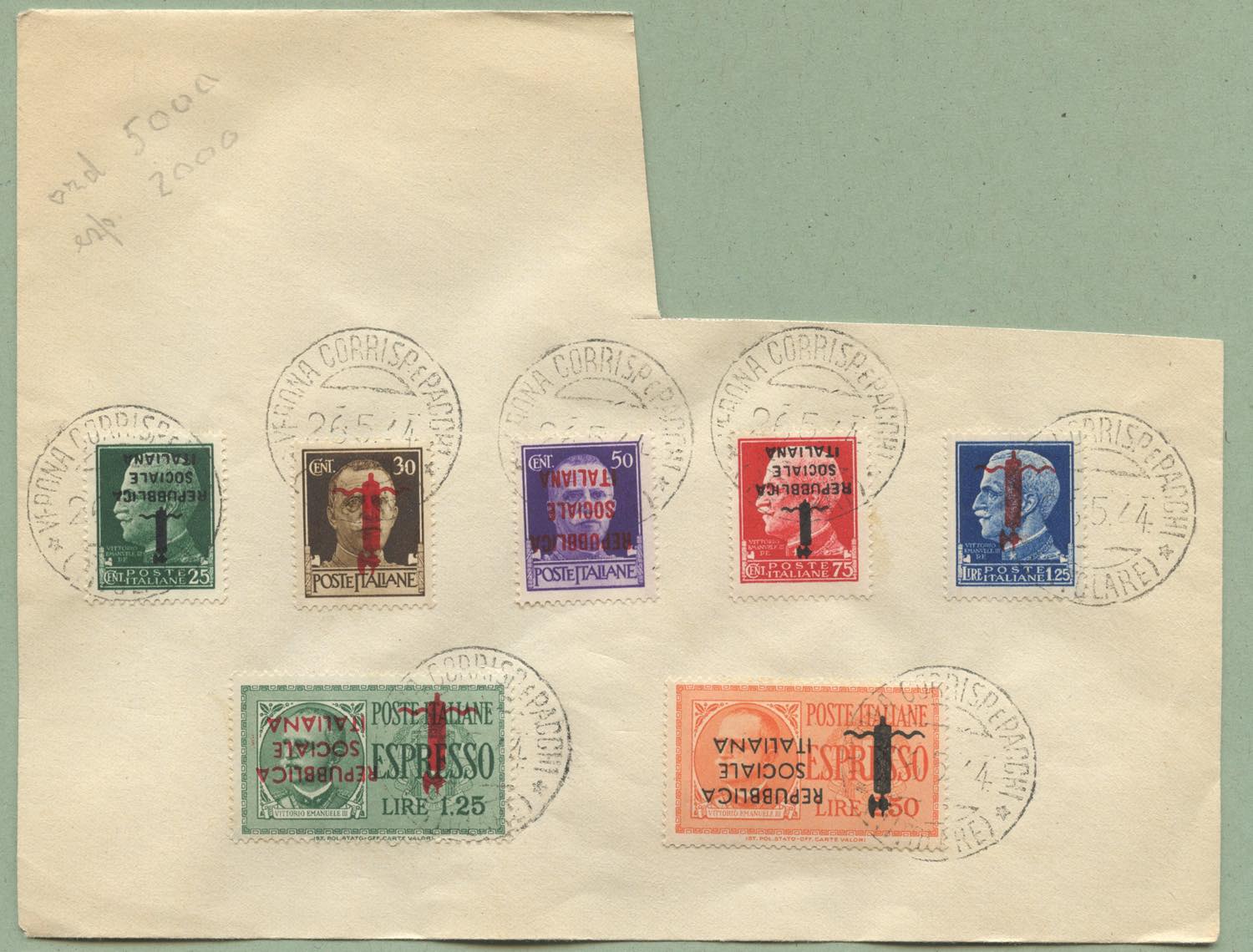 1944, Foglietto con la serie ordinaria, soprastampa di Verona capovolta.