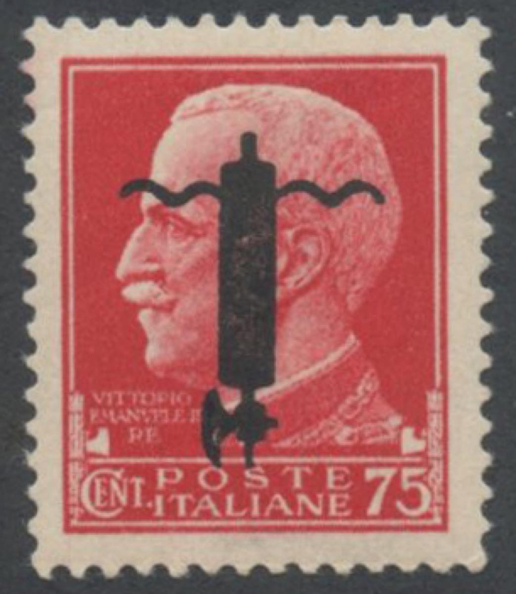 1944, R.S.I. - SAGGI - 75c. Con soprastampa del tipo 'I' in nero capovolta, nuovo con gomma MNH.
