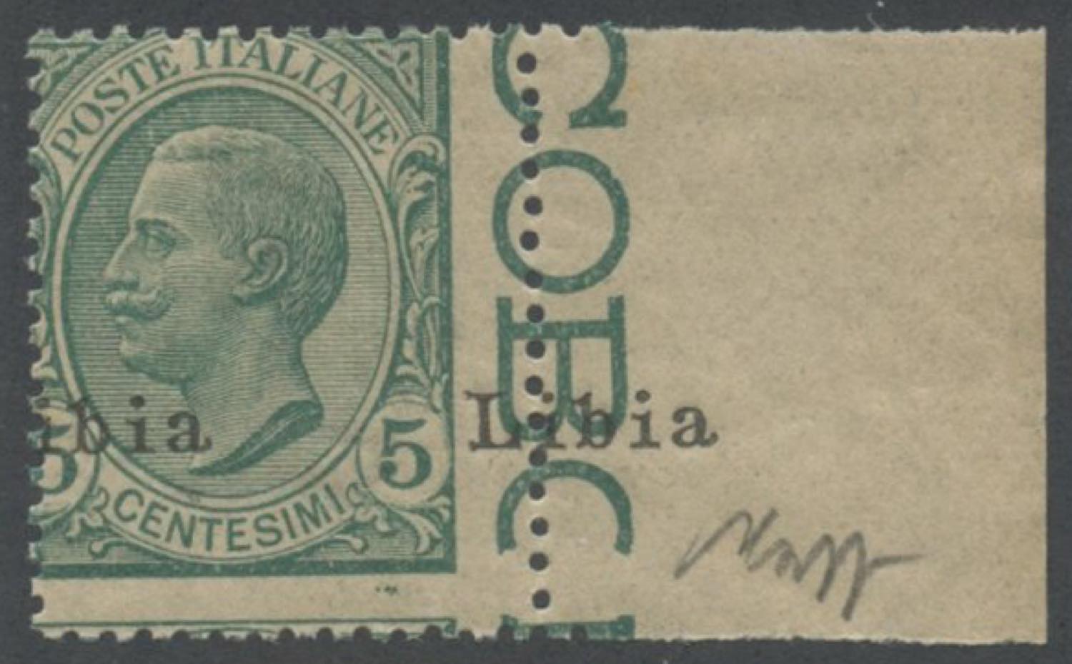 Lot 216 | Libia, 1912 5c. Verde N.3 nuovo con gomma integra, interessante varietà della...