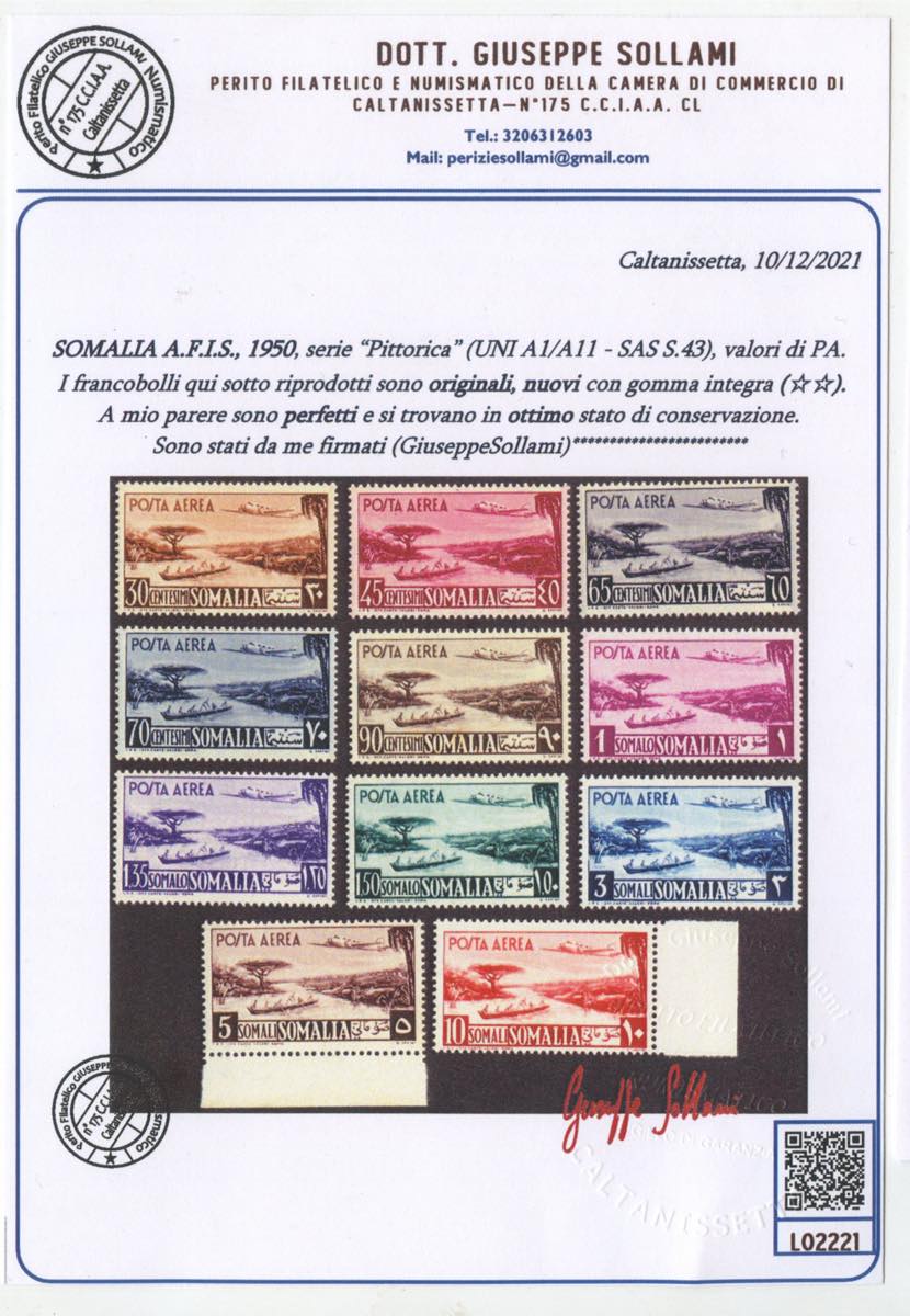 Lot 218 | 1950, Somalia Aereo e veduta N.1/11 serie nuova con gomma MNH. Cert. Sollami.