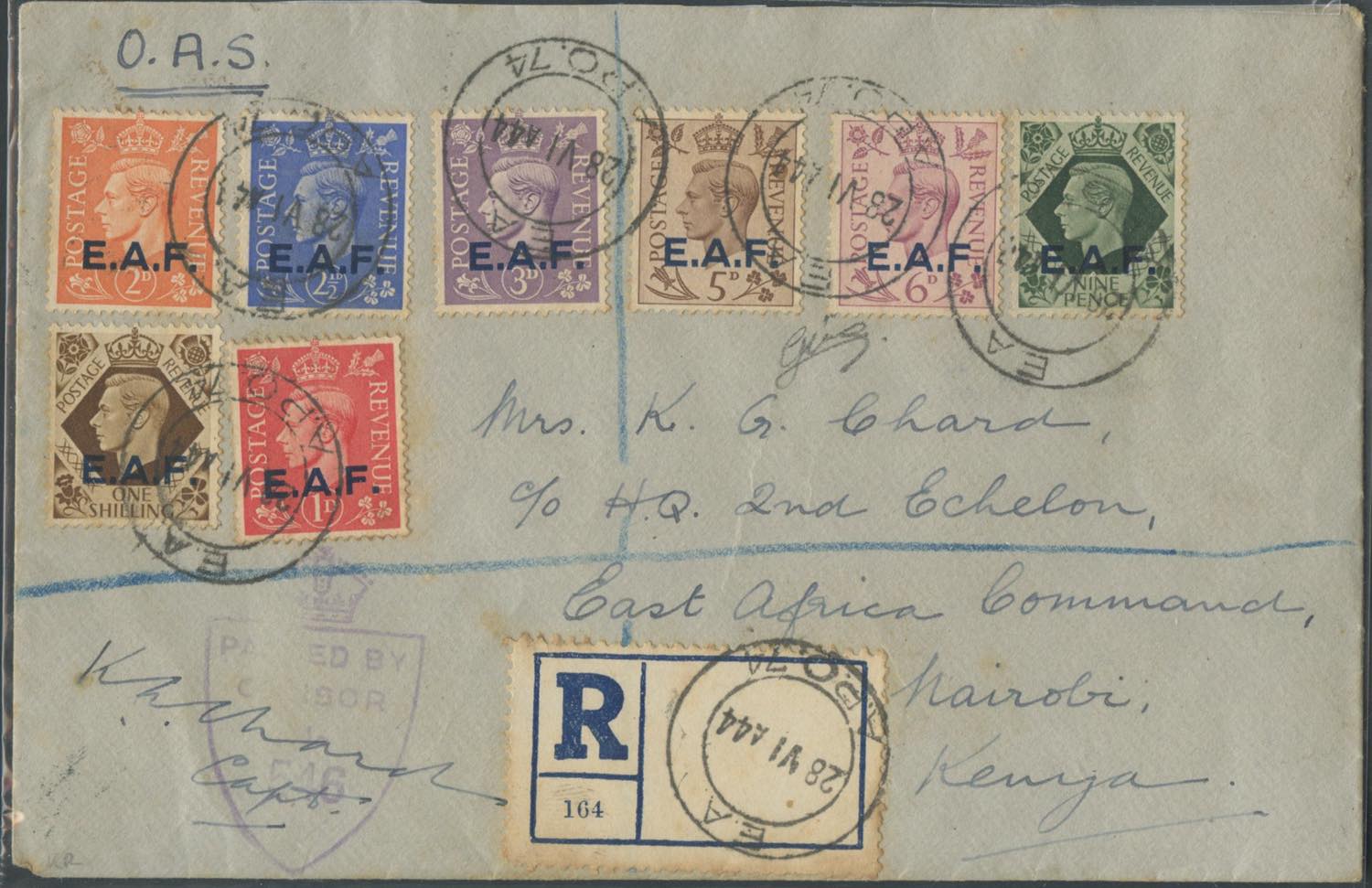 28.06.1944, Lettera non in tariffa con affrancatura composta da 8 valori sovrastampati ''E.A.F.'' N.1/8. Firma Biondi.