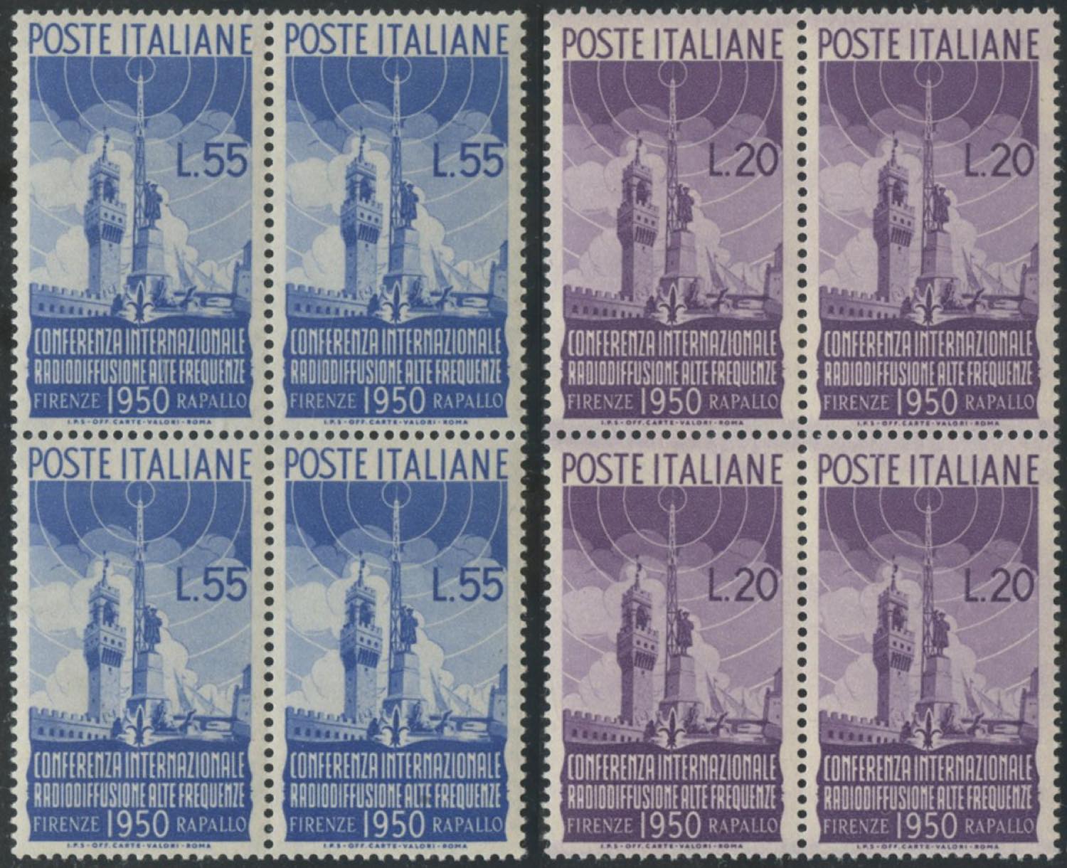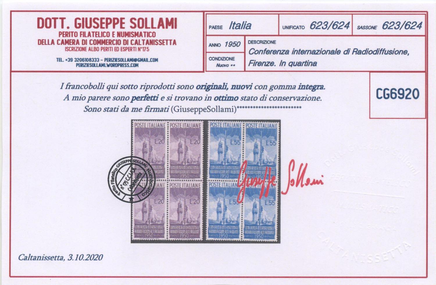 1950, Radiodiffusione N.623/624 serie in quartina nuova gomma MNH. Cert. Sollami