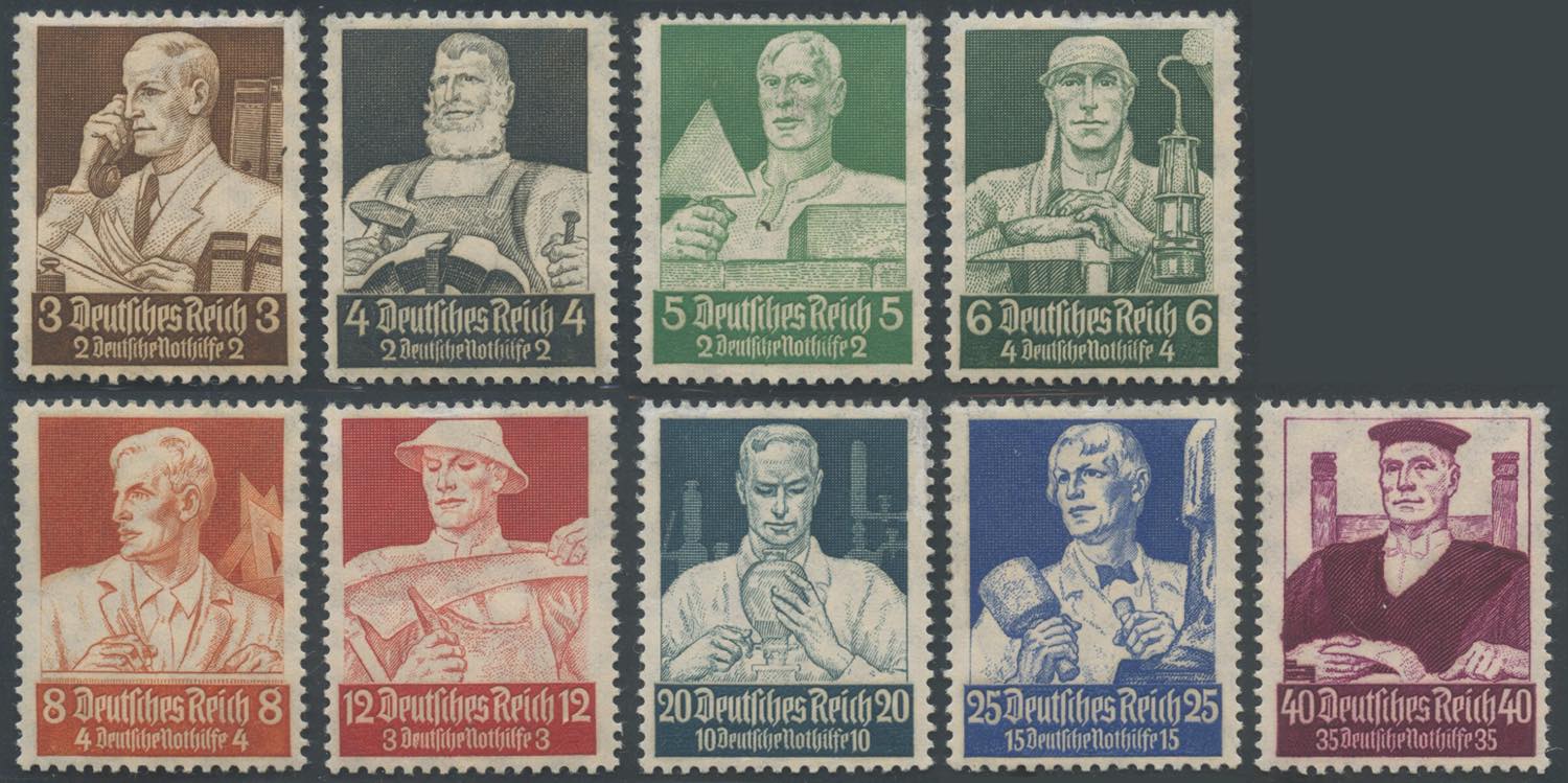 Reich, 1934 N.513/521 nuovi MLH. Traccia di linguella invisibile. Ottima Qualità.