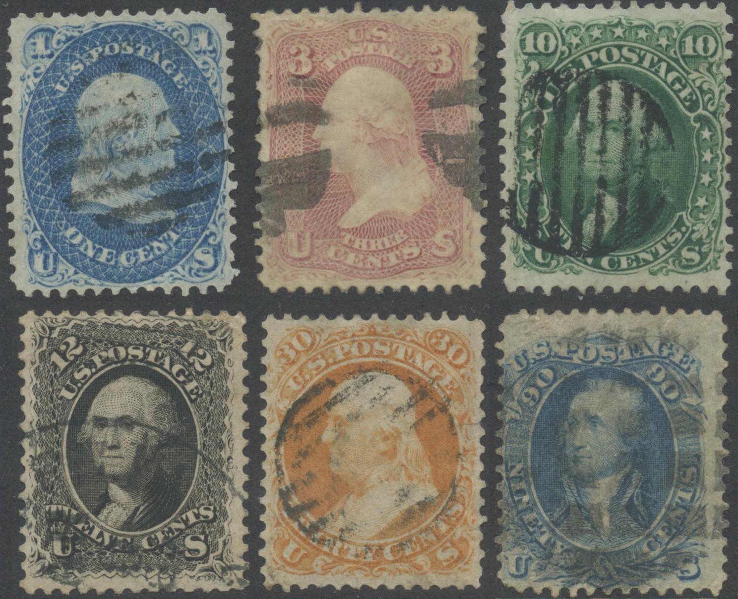 1861, N.21, 22, 24, 25, 27, 28 usati. 10c. . 12c. E 30c. di ottima qualità, gli altri con alcune imperfezioni.