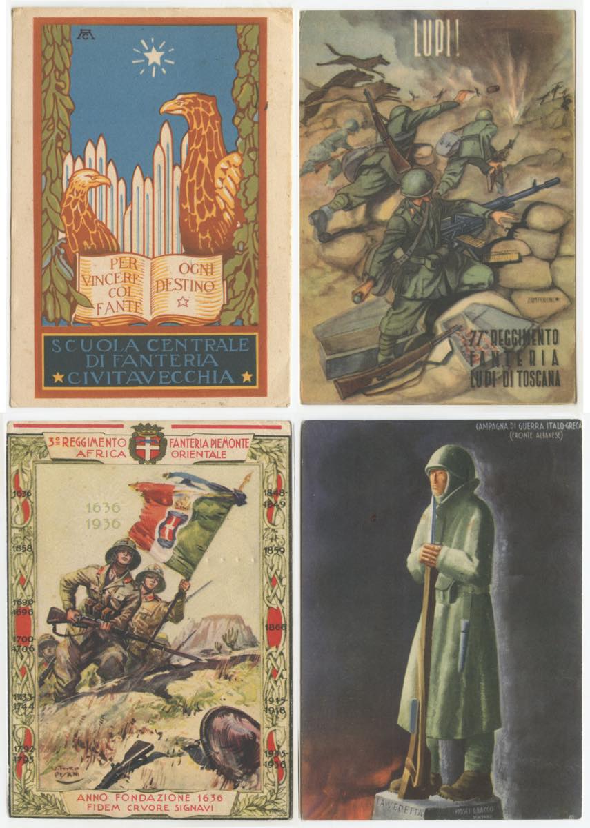 Lot 312 | II Guerra Mondiale, Cartoline illustrate ''Regimenti Fanteria''. 14 pezzi...