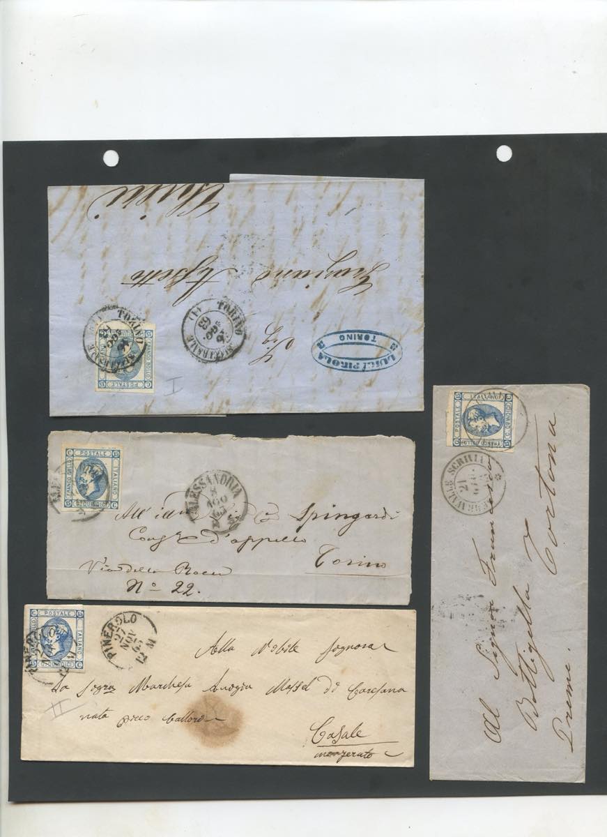 Italia- Regno, Insieme di 4 lettere affrancate tramite il 15c. Litografico ed annullate con timbri del Piemonte.