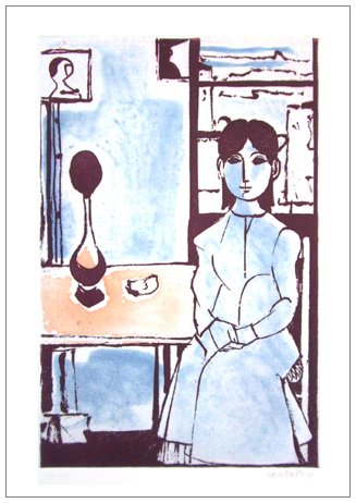 DOMENICO CANTATORE Ruvo di Puglia 1906 – Parigi (Francia) 1998 Senza titolo Acquatinta a colori es.14/200. Firma + timbro a secco Graphis Arte, Livorno in b. a d. (70,5 x 50 foglio – 49,5 x 32 lito.) L’opera fa parte della cartella “Cantatore – Donne e uomini del Sud” a cura di Luigi Cavallo, Edizioni d’Arte Torcular, Milano.