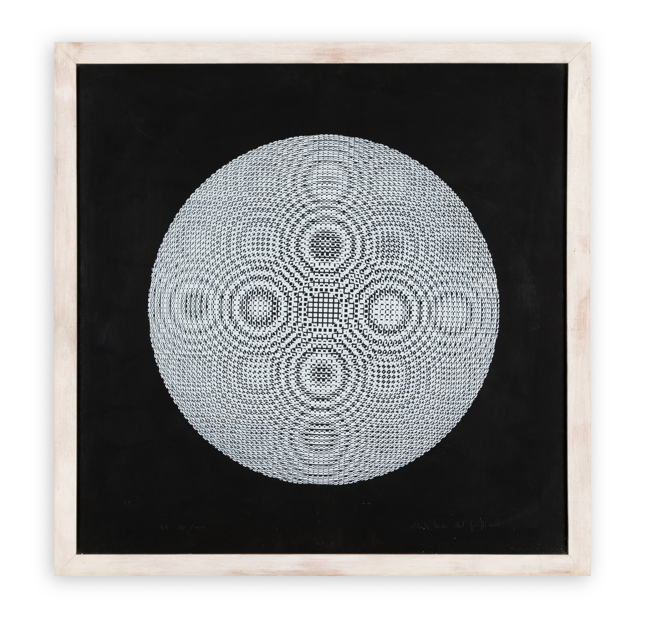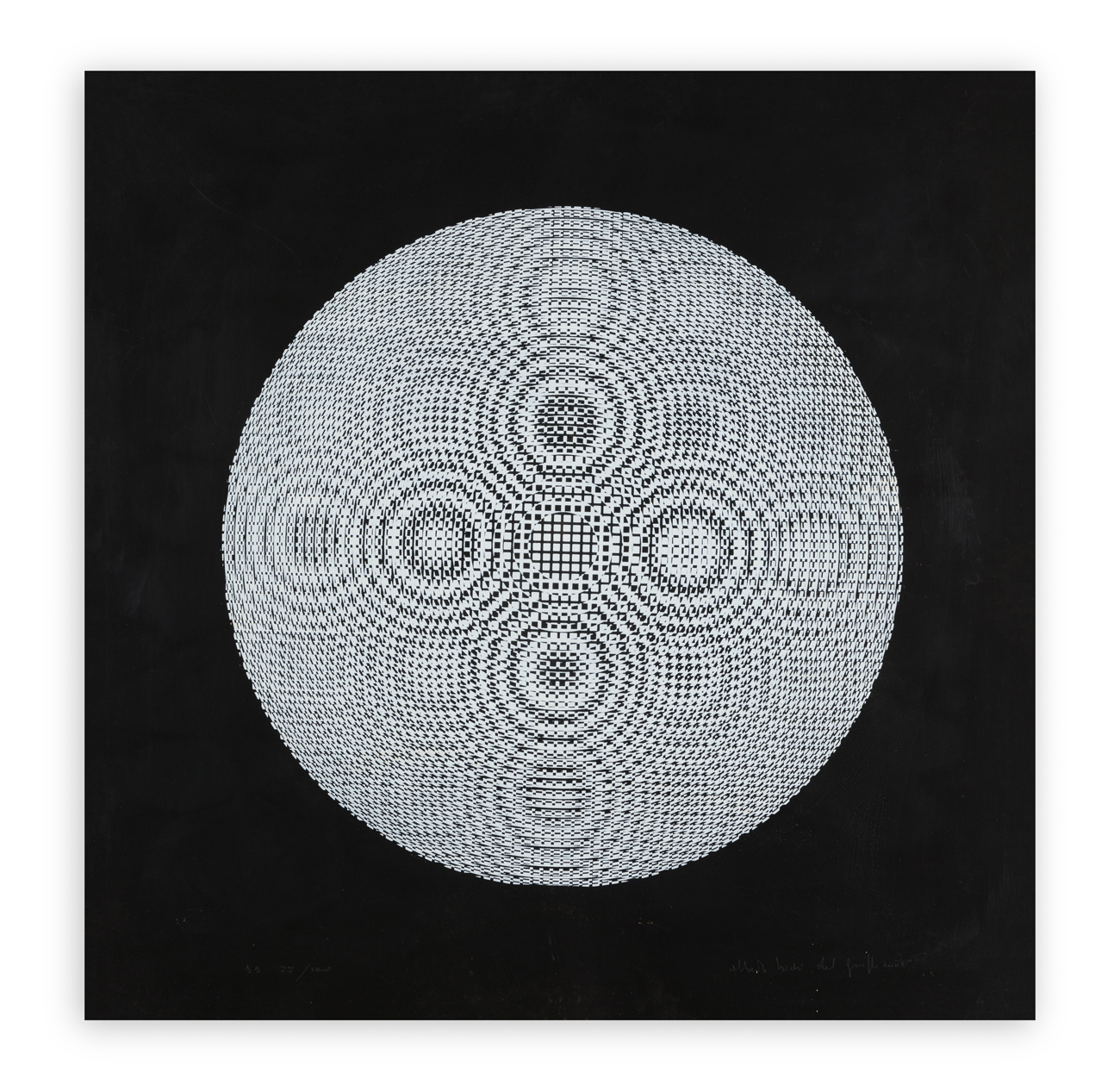 Firma "Alberto Biasi del gruppo enne", titolo e numerazione (Esemplare 77/100) a matita al fronte