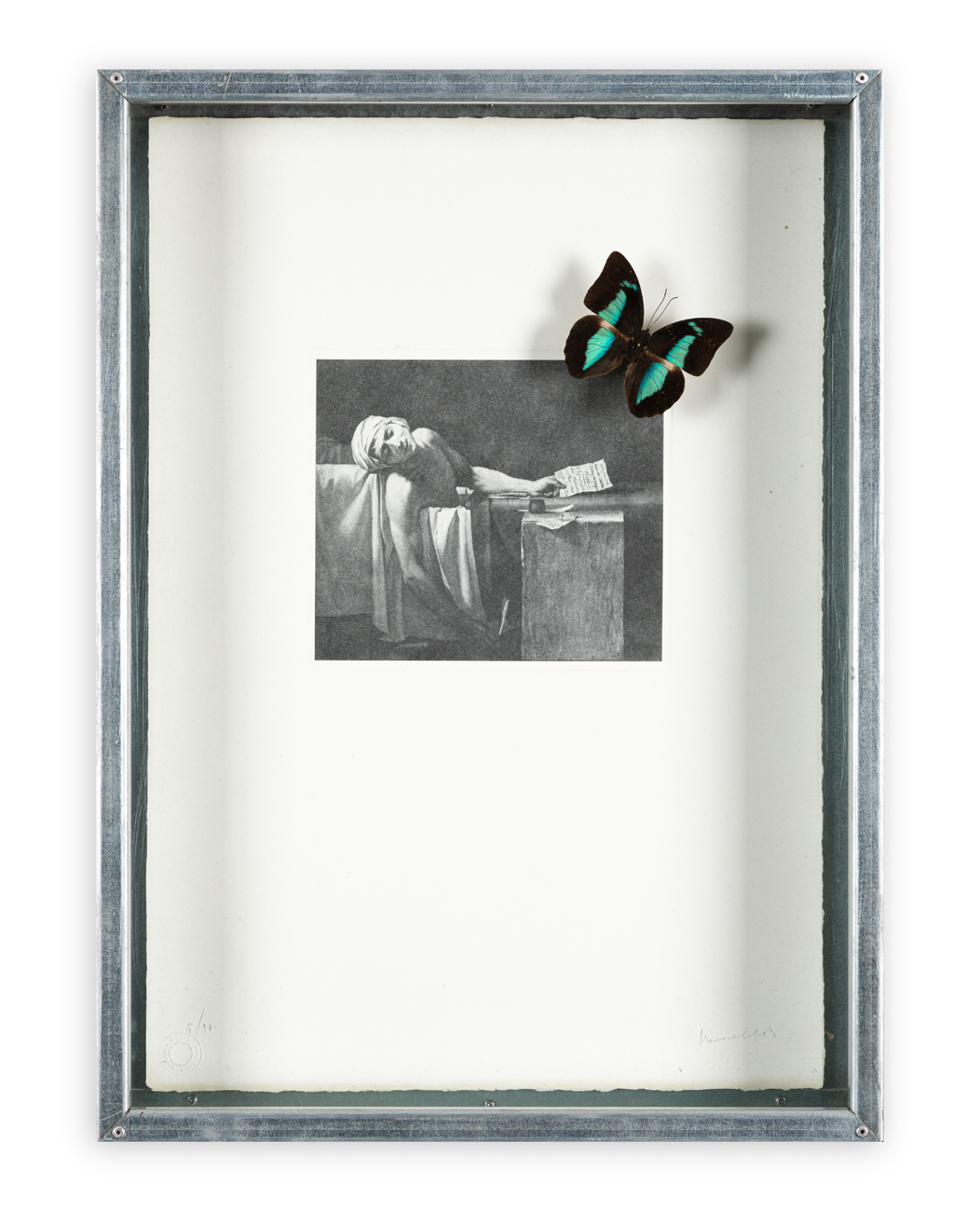 Litografia offset, goffratura su carta Chiffon Magnani, farfalla, scatola in ferro zincato