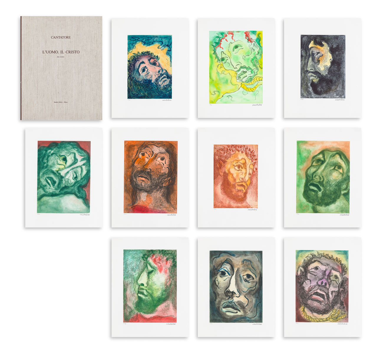Cofanetto contenente testi di presentazione di Pasquale Macchi, Carlo Bo e Paolo Bellini e 10 incisioni di Domenico Cantatore, ciascuna recante firma e numerazione (Esemplari 27/50) a matita al fronte e timbro a secco dello Stampatore