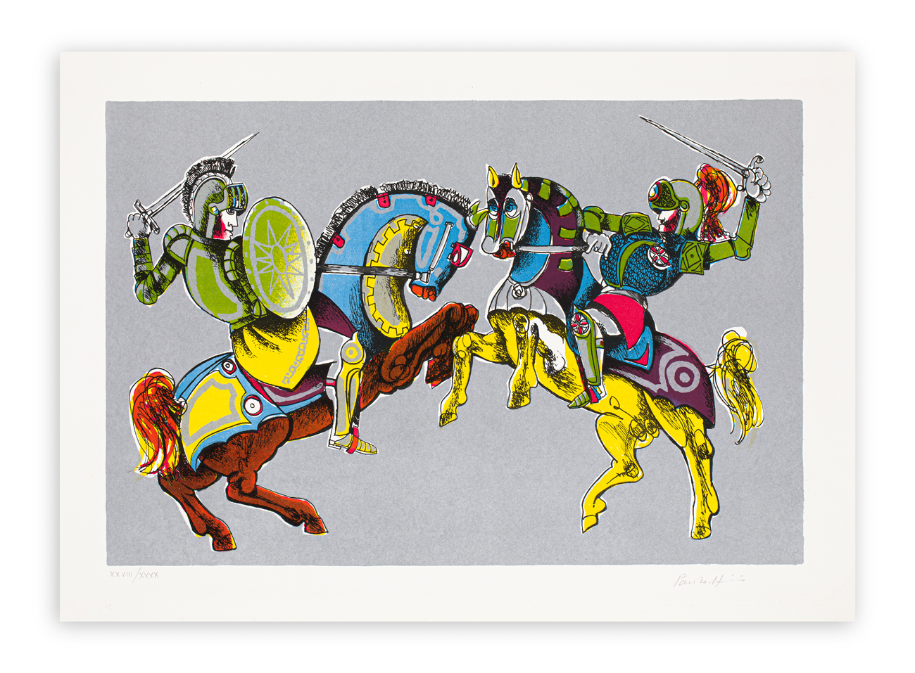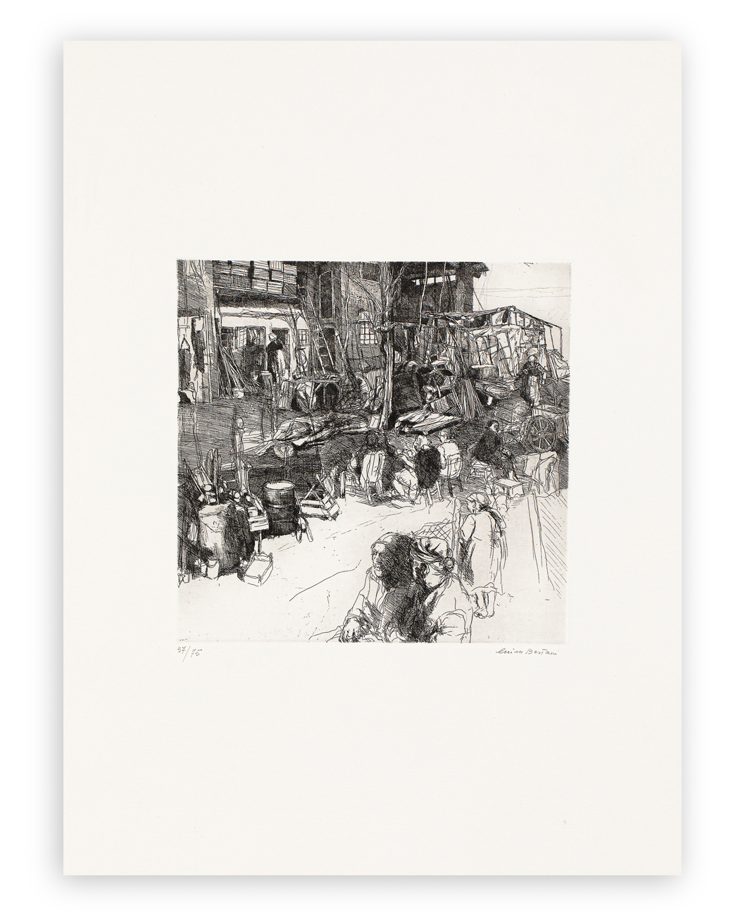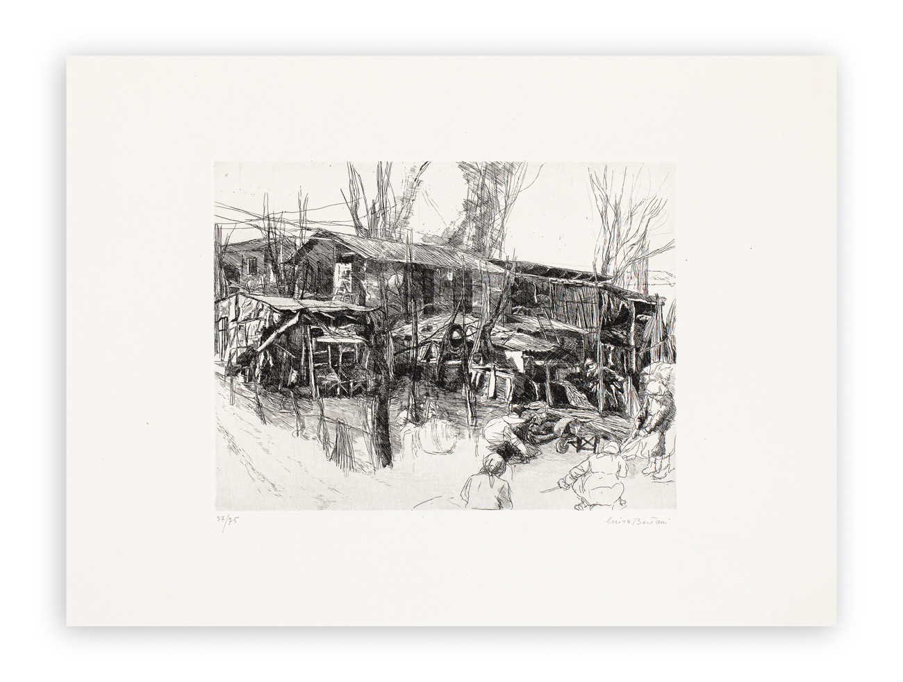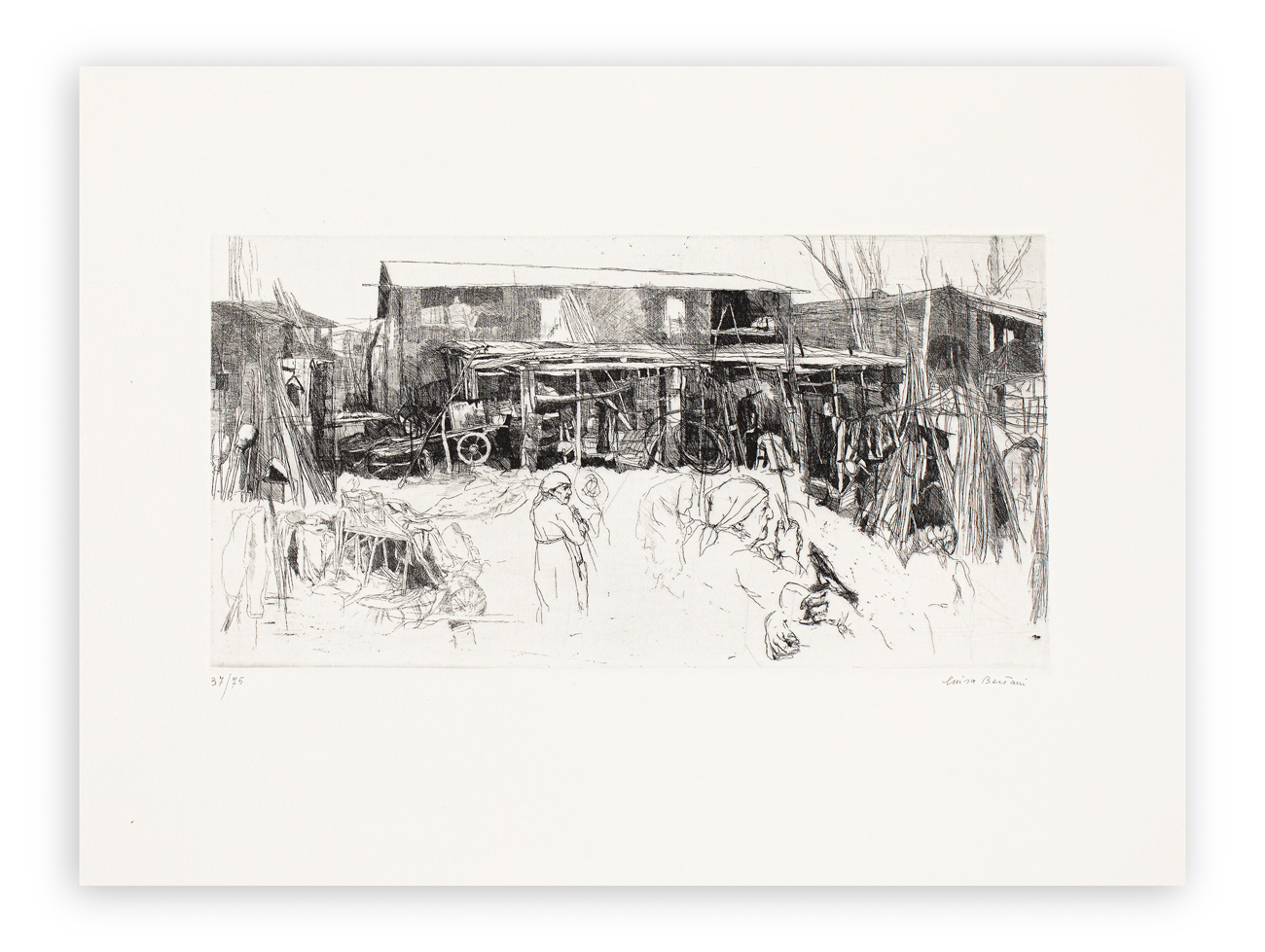 Cartella contenente testo di presentazione di Elio Mercuri e 6 acqueforti, ciascuna recante firma, datazione e numerazione (Esemplari 2/50) a matita al fronte e timbro a secco dello Stampatore
