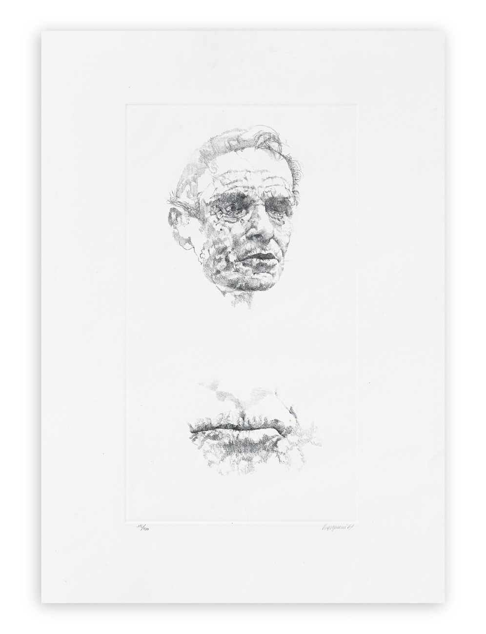 Firma e numerazione (Esemplare 119/300) a matita al fronte