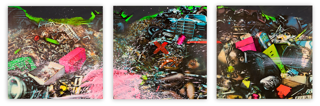Tecnica mista su trittico di tele emulsionate