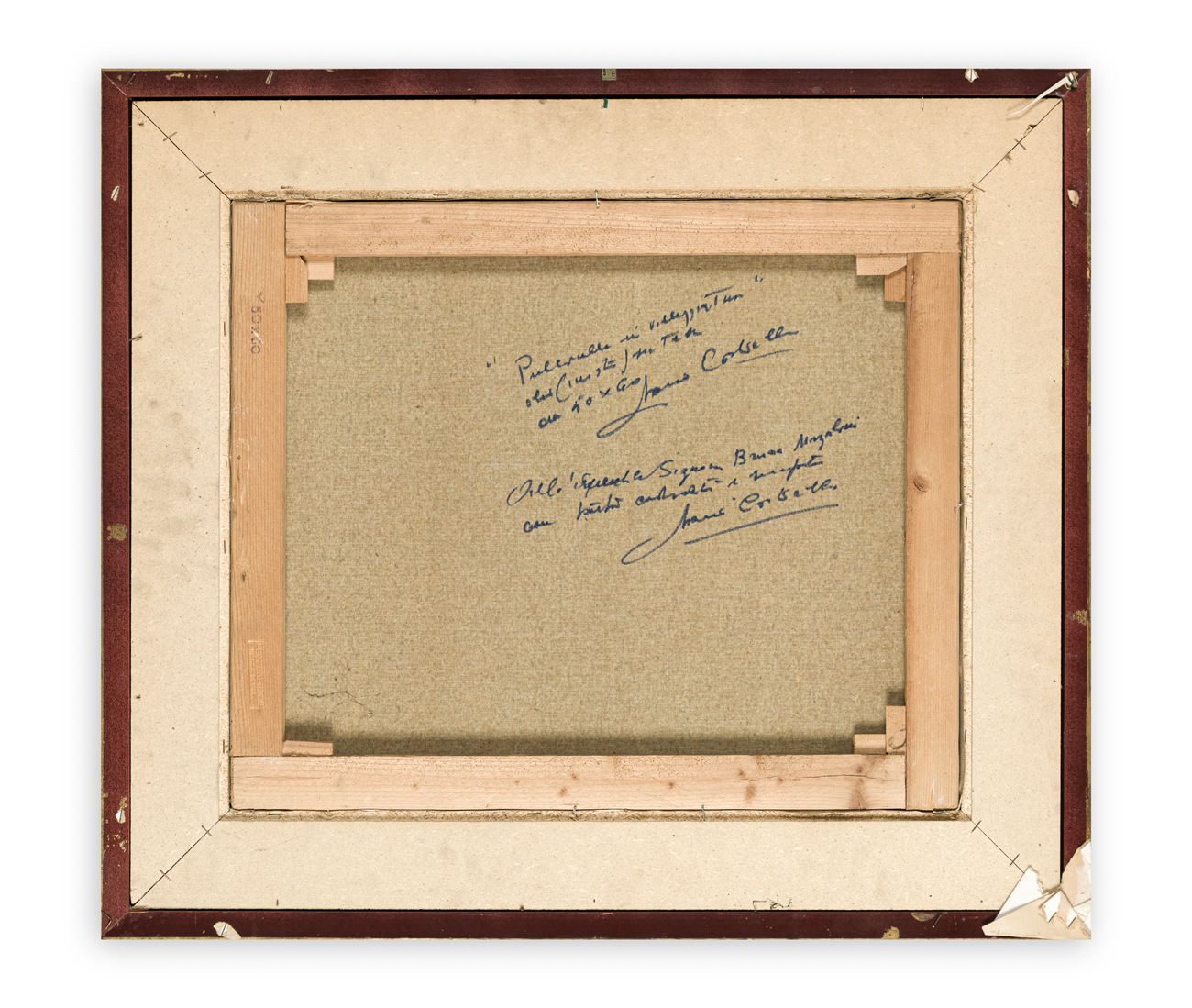 Firma, titolo, tecnica, misure e dedica ad personam al retro