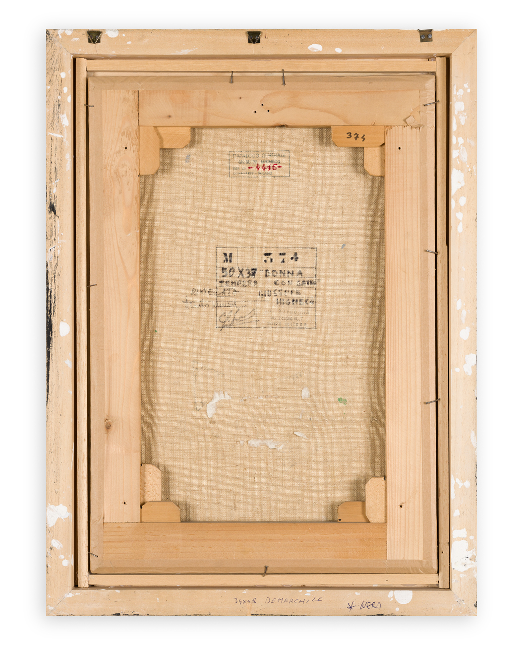 Timbro del Catalogo Generale Giuseppe Migneco con relativo numero di repertorio e ulteriori timbro al retro