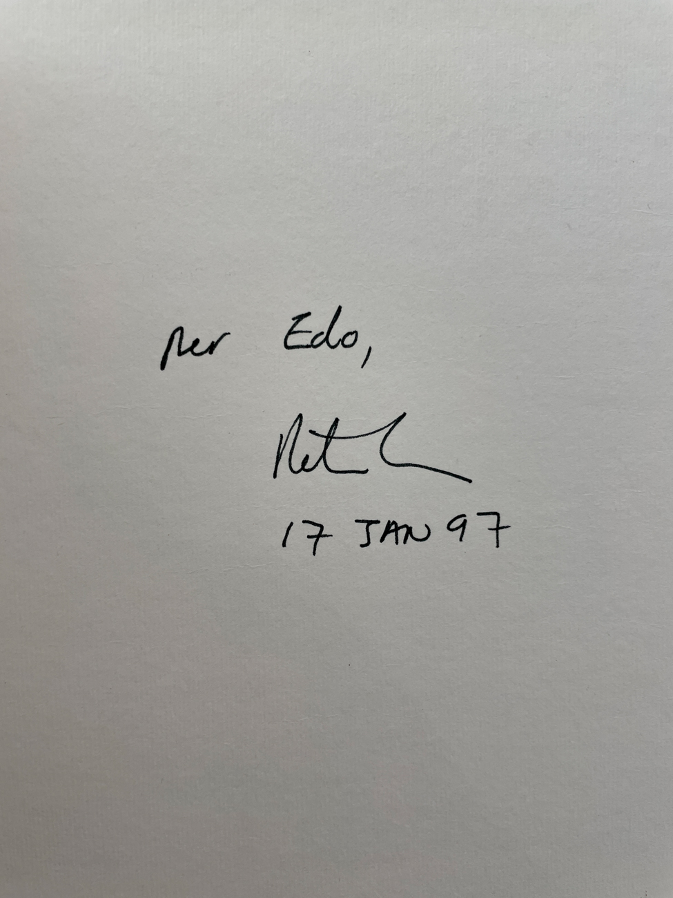 Reca firma e dedica ad personam dell'Artista, datata 17 Jan 97, all'interno