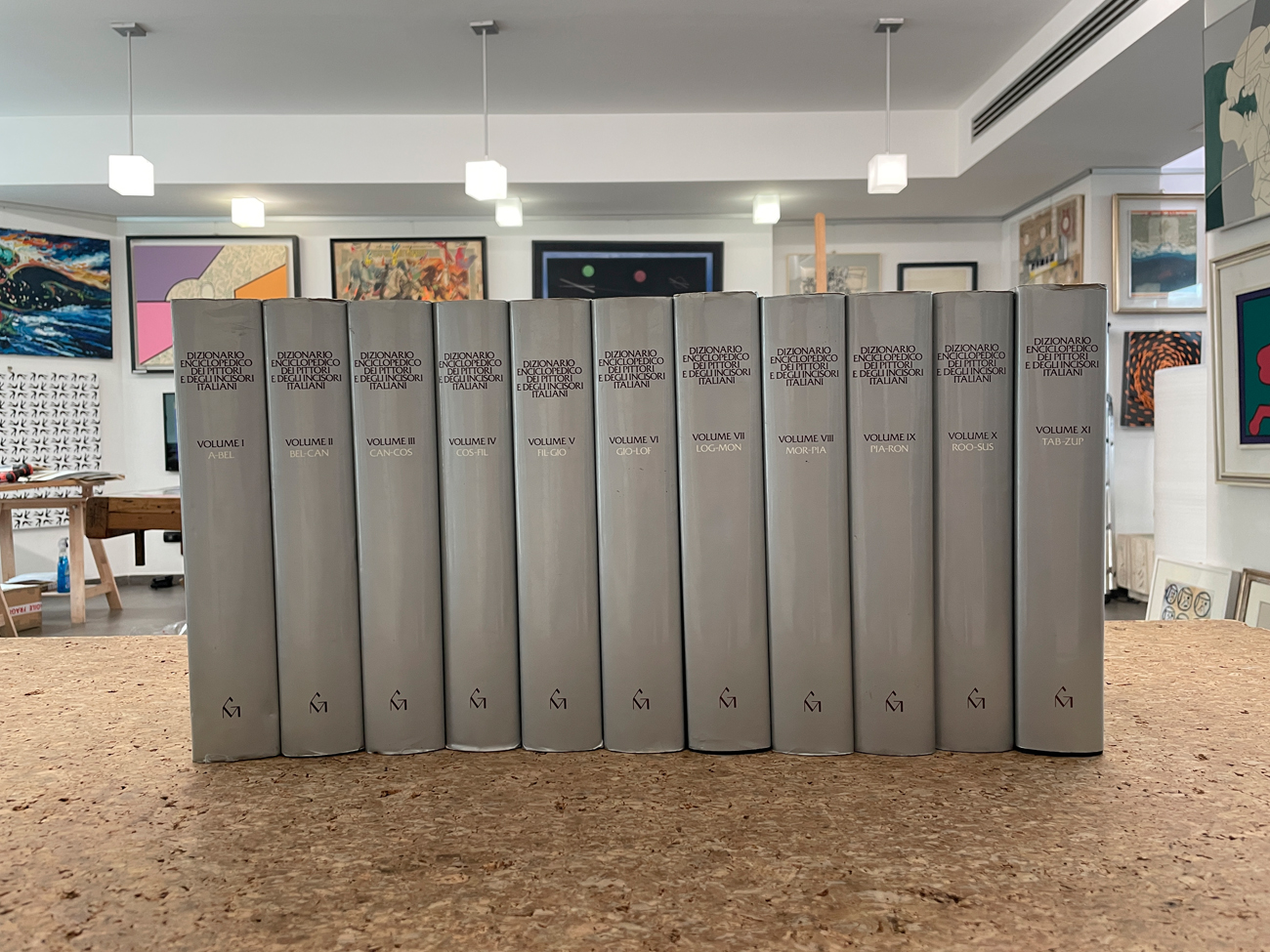 Lotto unico di 11 tomi, tutti riccamente illustrati, relativi alla raccolta 'Dizionario enciclopedico dei pittori e degli incisori italiani'