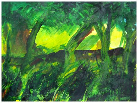 ROBERT CARROLL Painesville (USA) 1934 Senza titolo Acrilico su tavola 30 x 40. Firma in b. a d.; sul verso num. archivio, titolo (illeggibile), tecnica, misure e firma.
