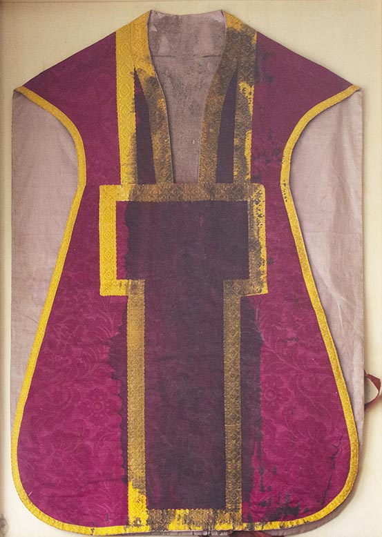 Hermann Nitsch, Paramento insanguinato, 70,5x107 cm, Pianeta, Archivio P.E.110112007,Provenienza e autentica Fondazione Giuseppe Morra firmata dal Maestro,