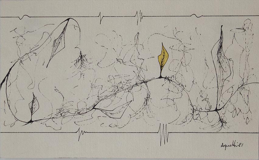 Vincenzo Agnetti, China e tempera su carta, 29x18 cm, Suonatore di fiori, 1981, Archivio Agnetti N. 0208EXT198101601361.