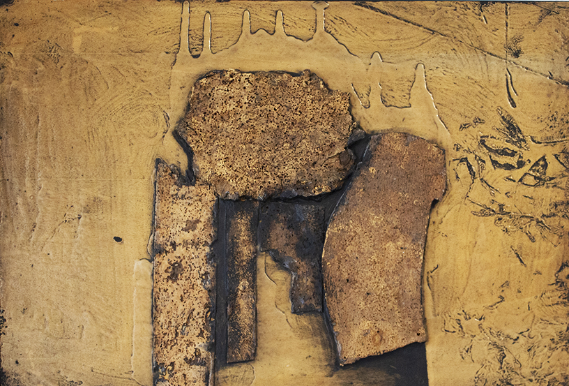 Robero Crippa, Sugheri e collage su compensato, 50x70 cm, Mimetisme de la conscienze, 1960, Certificato di provenienza "Farsetti Arte".