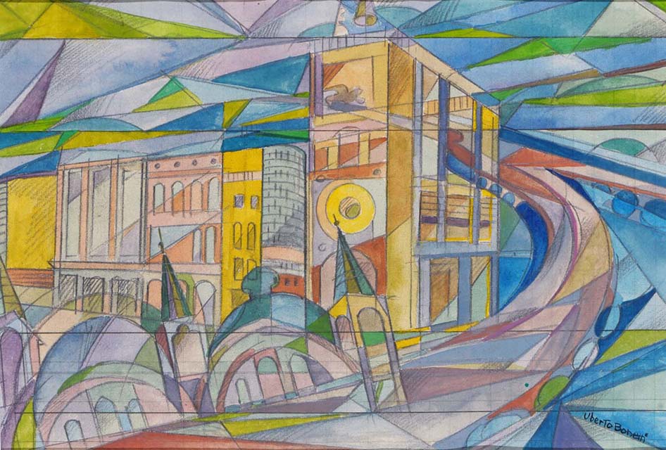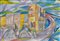 Uberto Bonetti, Tecnica mista su carta, 22x32 cm, Venezia Lido Aeropittura, Pubblicato sul Catalogo " Anni '30 l'Italia nelle aeroviste di Uberto Bonetti" p.199 n.374