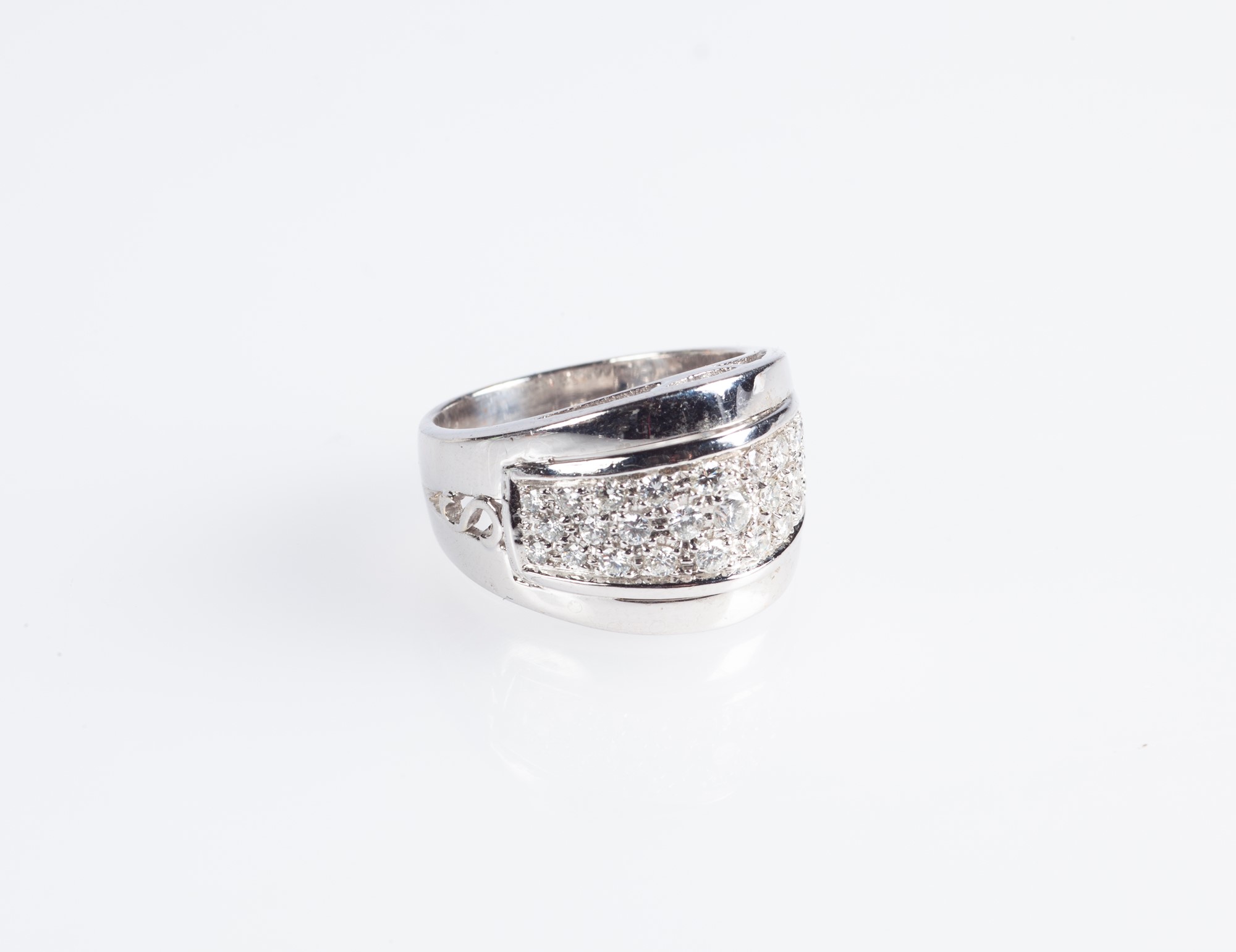 Oro bianco 750/000. Diamanti in taglio rotondo brillante ct. 1 circa, G-H, vvs-vs. . Peso complessivo gr.9,90