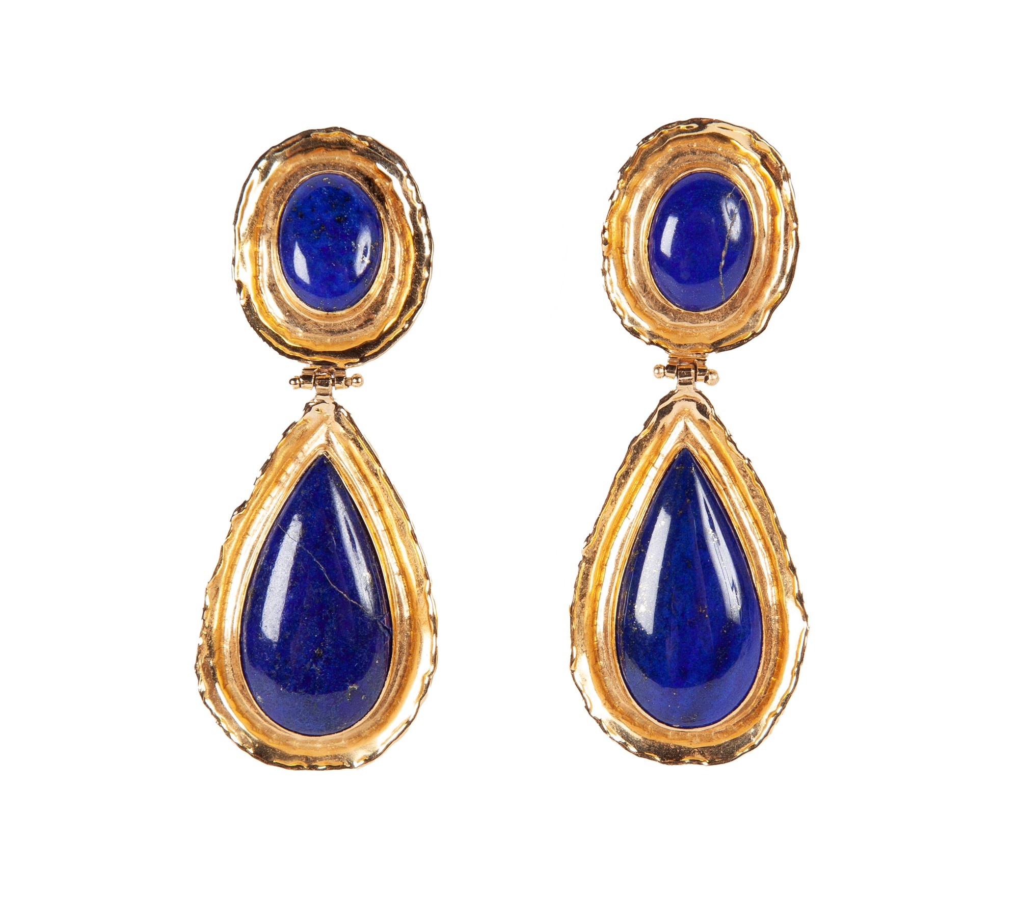 Orecchini pendenti in oro e lapislazzuli cm 6,5