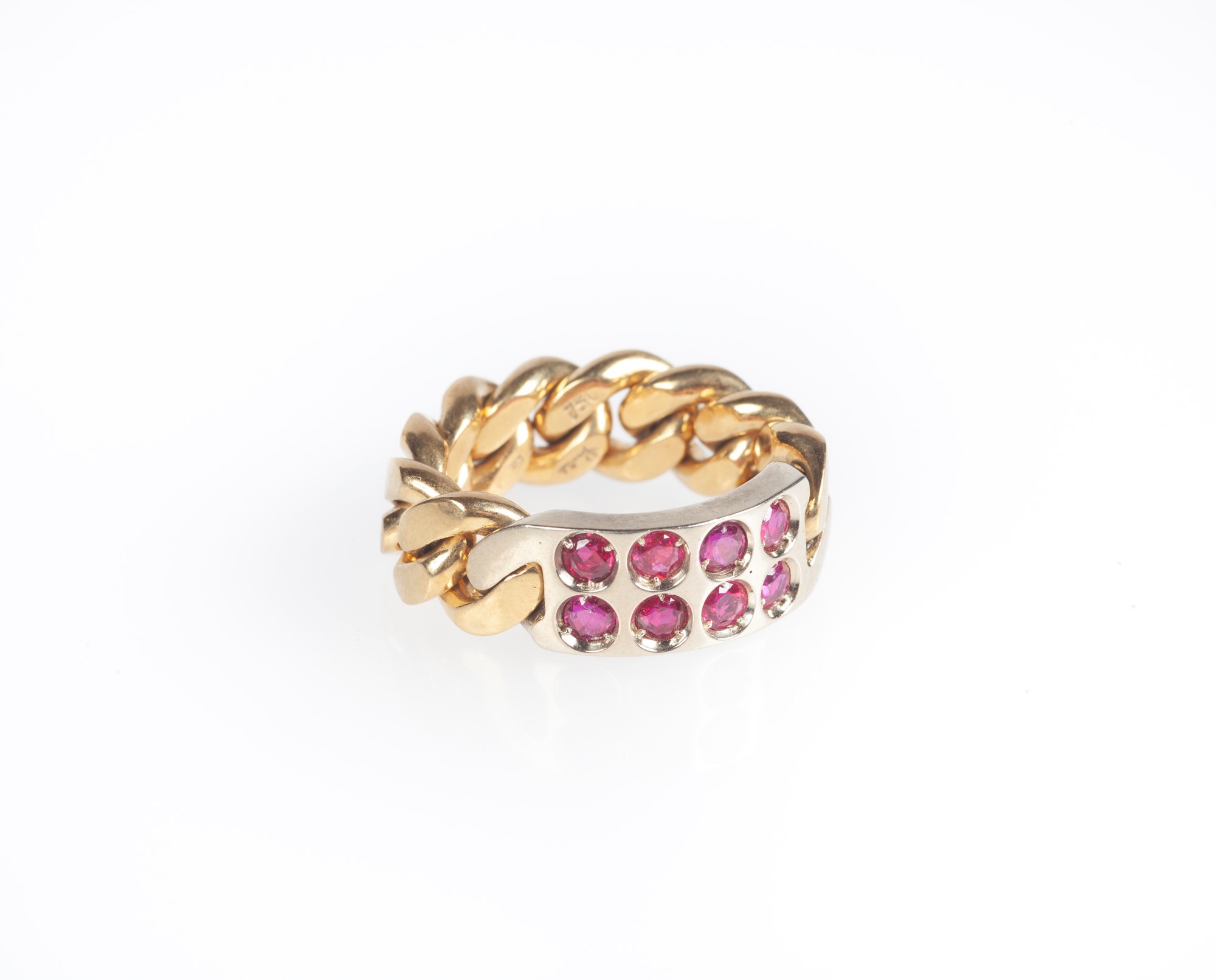 Pomellato - anello a maglia groumette in oro e rubini Misura 13