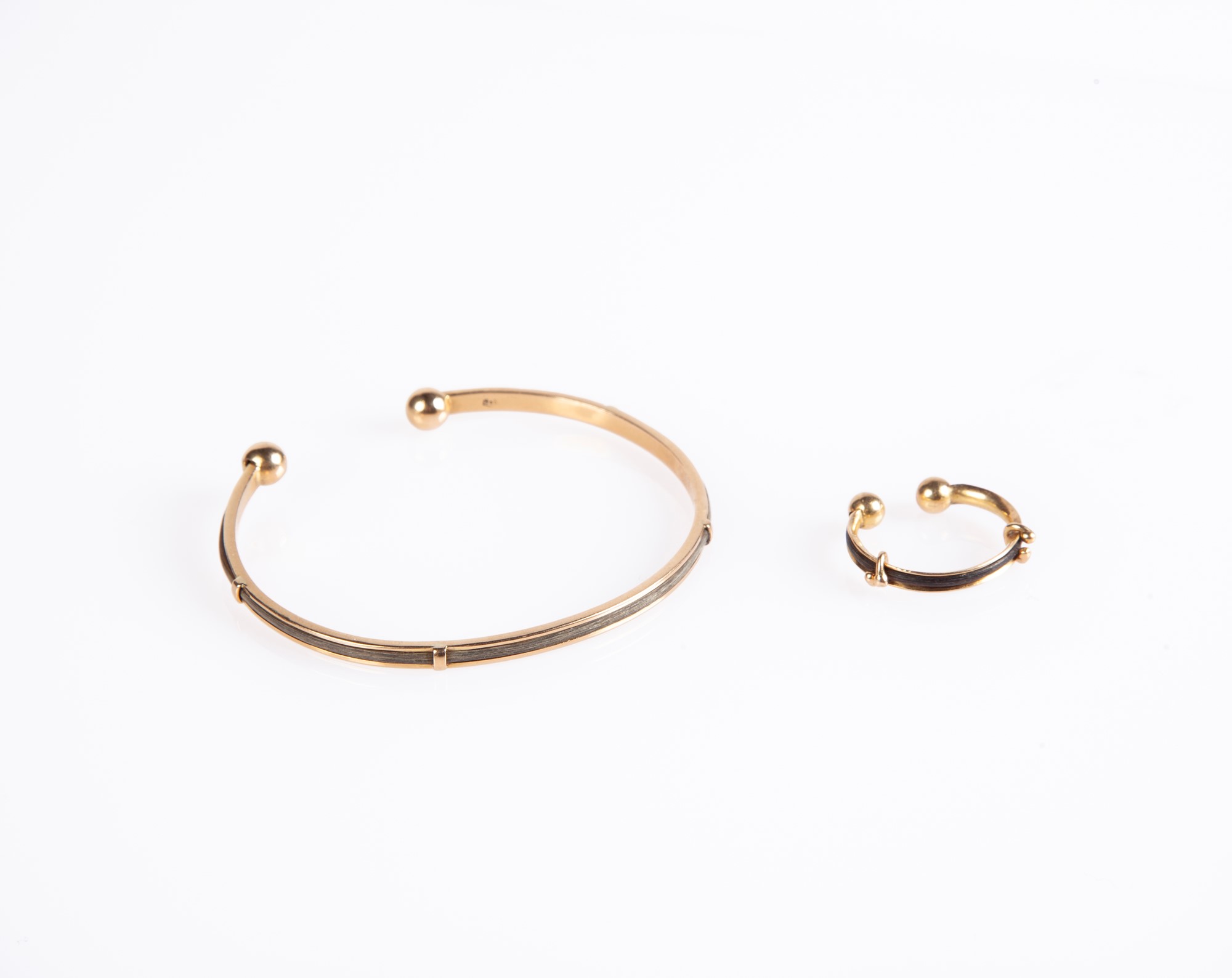 Parure di bracciale e anello in oro e caucciù vestibilità cm 12