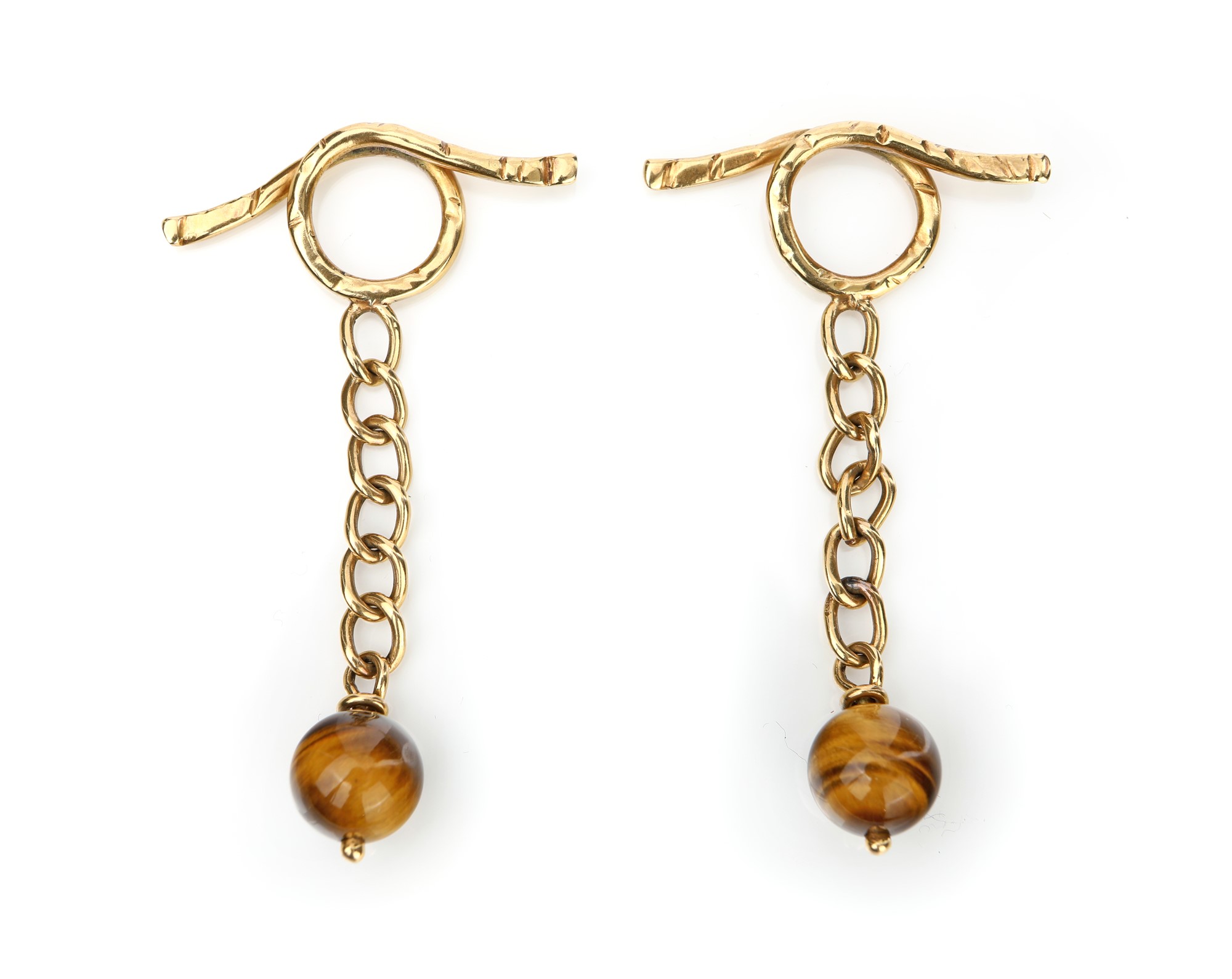 Oro giallo 750/000. Occhio tigre mm.10.Peso complessivo gr. 13,20