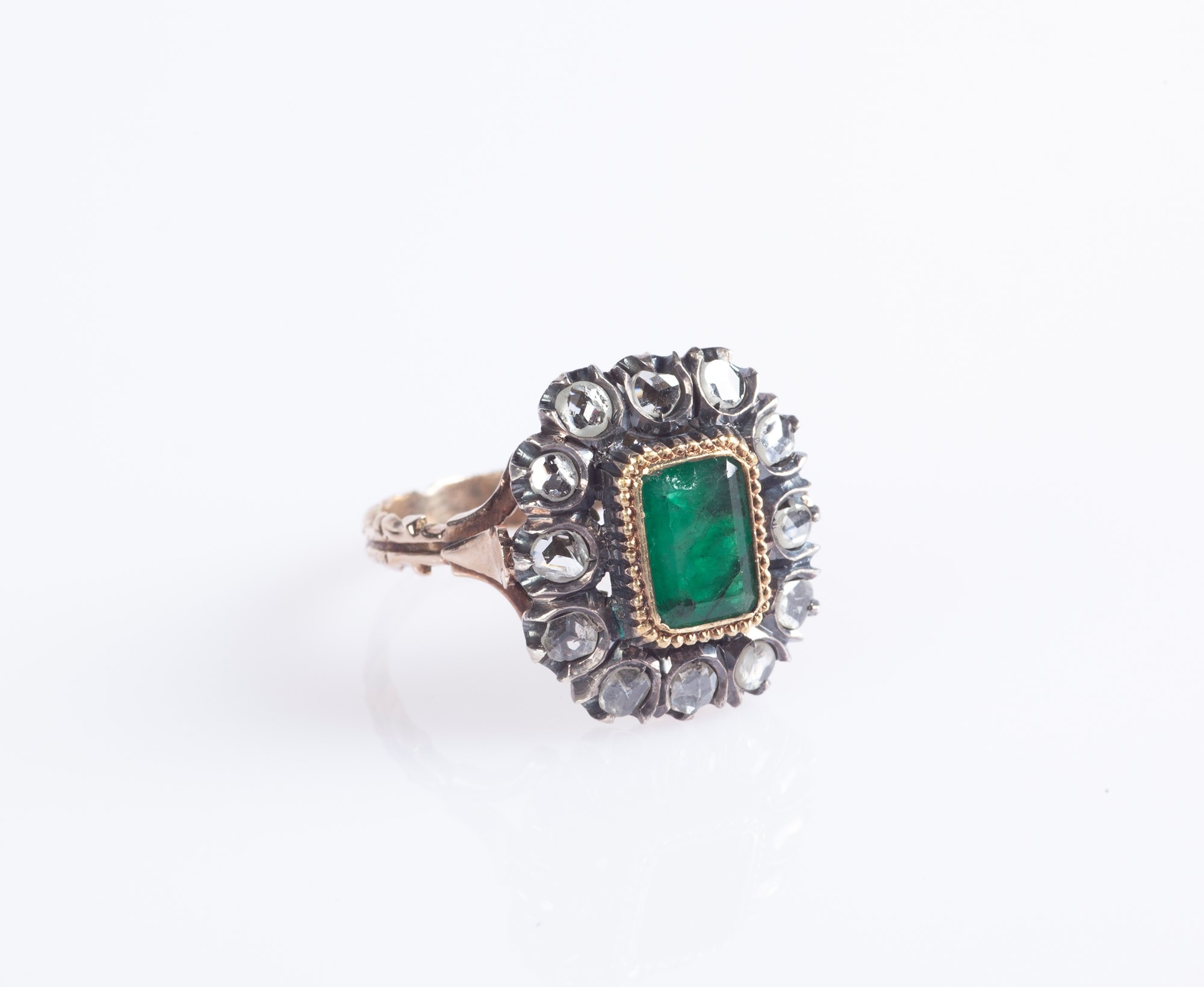 Anello in oro e argento, diamanti e smeraldo Misura 18