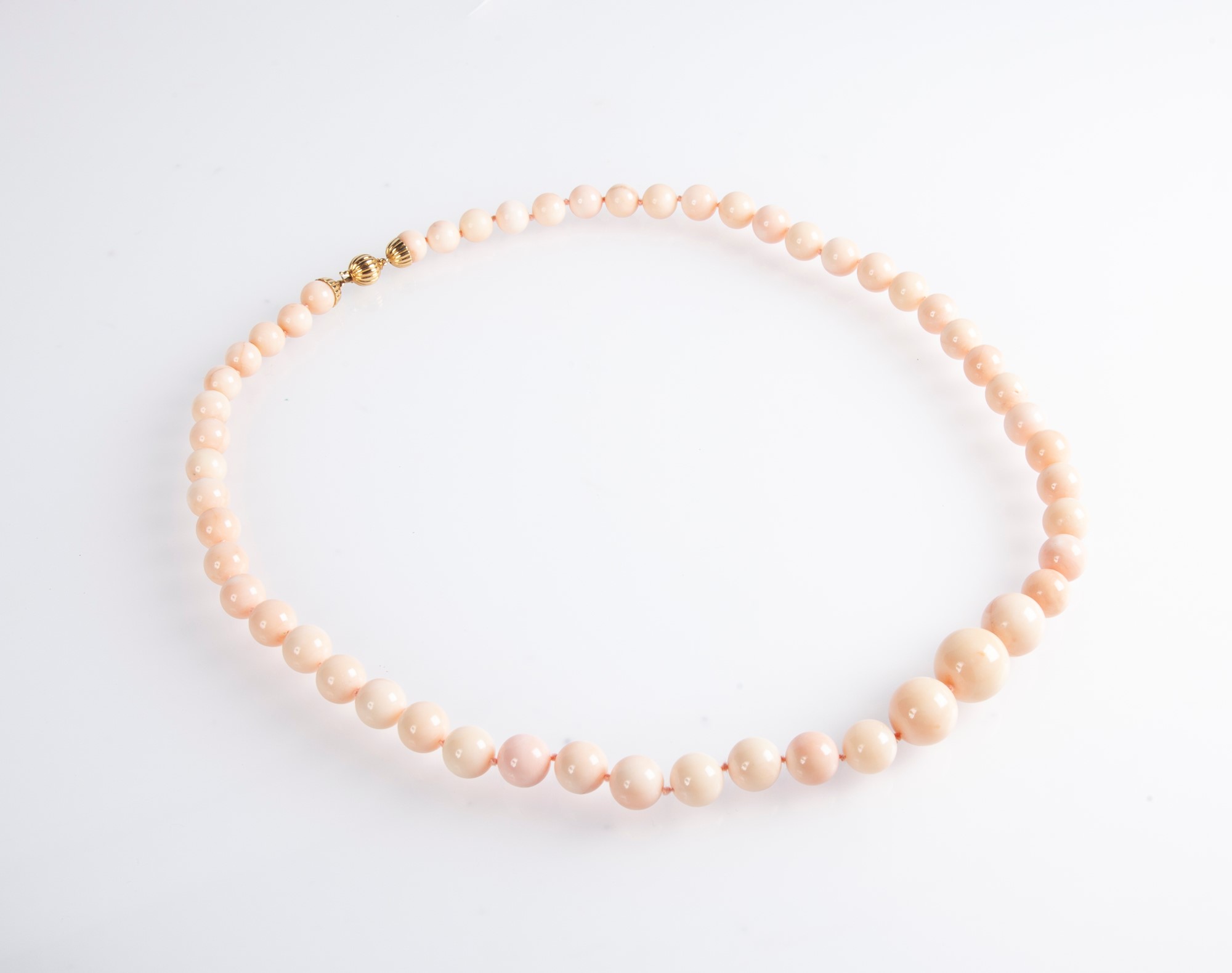 Collana di corallo rosa a sfere e oro